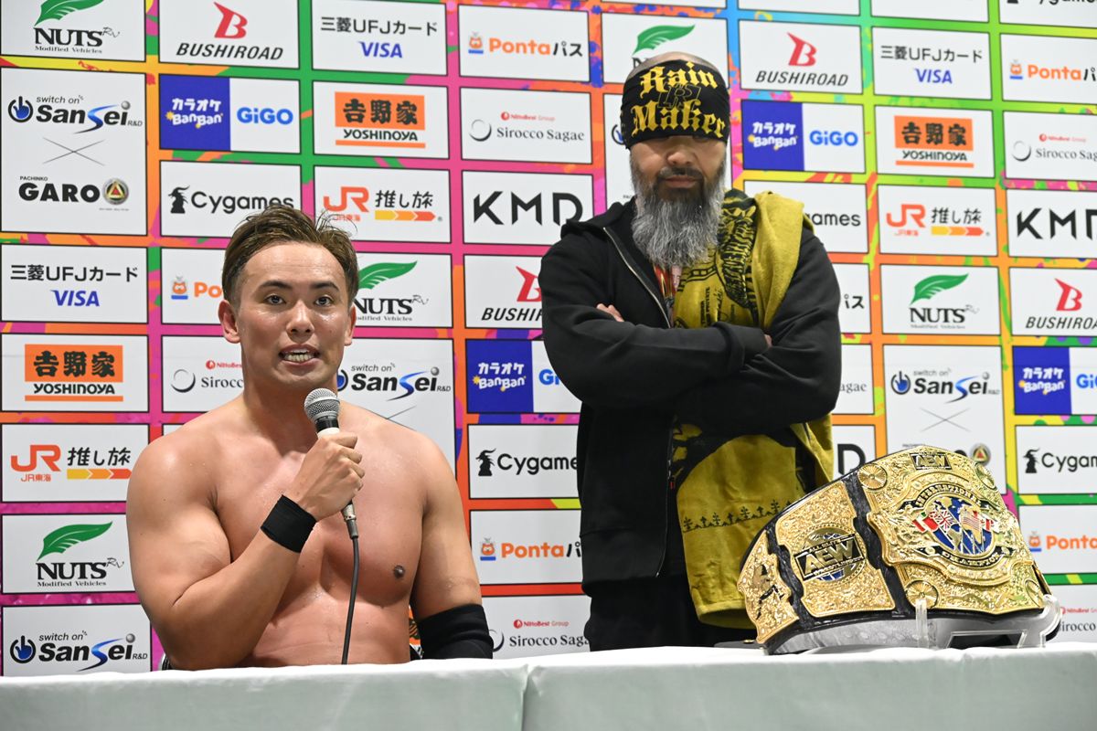 湿っぽい空気を嫌うレインメーカー流のジョークで報道陣を和ませると、最後はAEW王者として、そしてプロレス界の顔として力強く締めくくった。