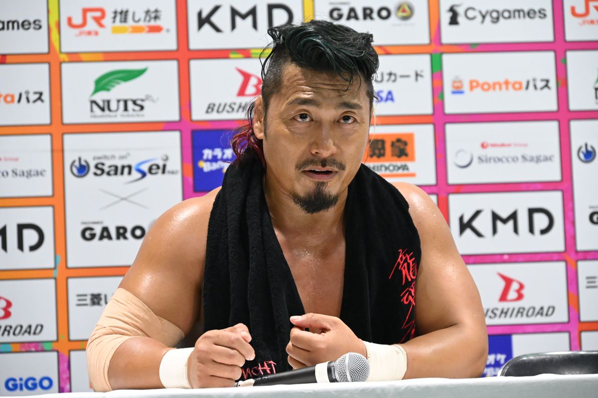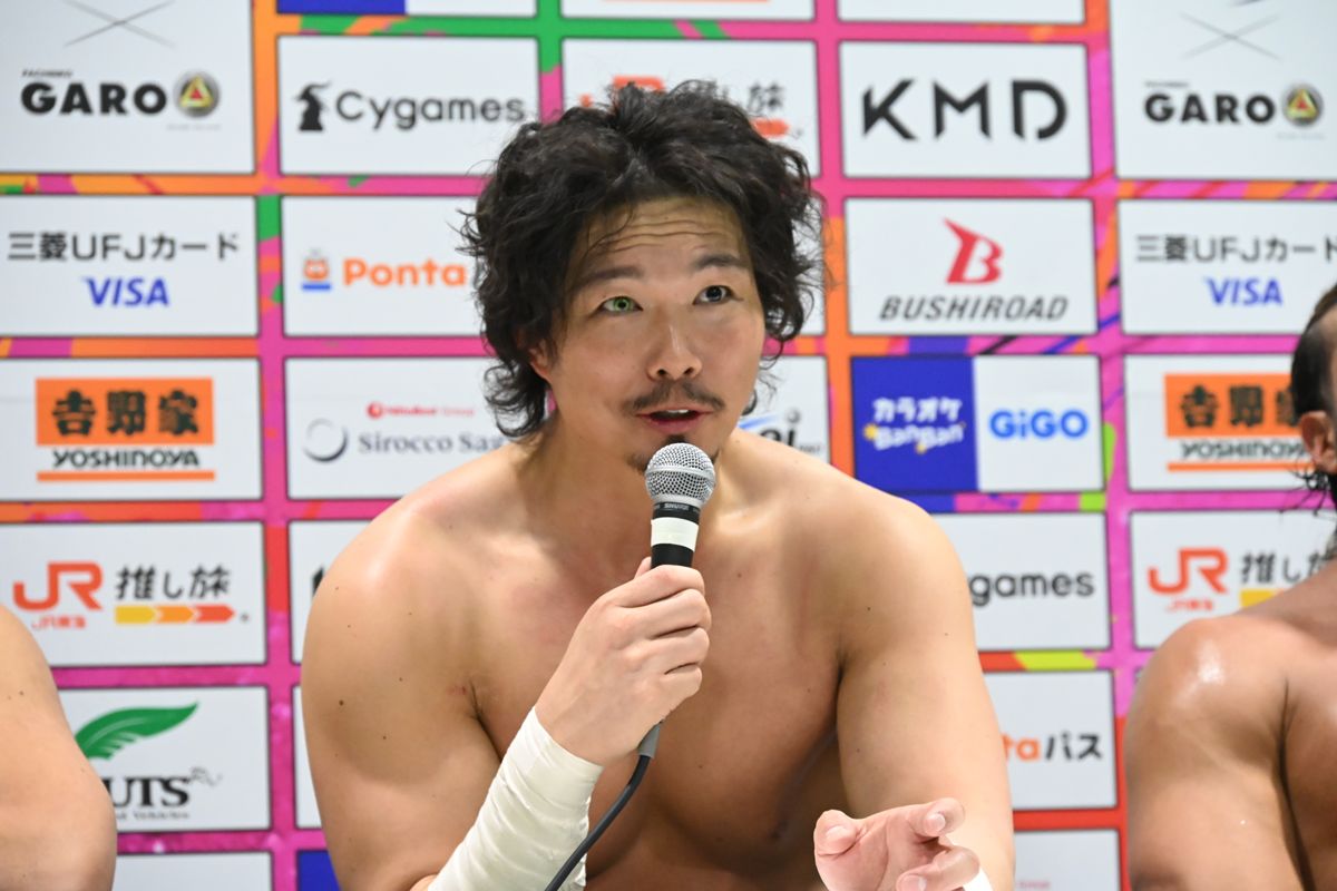 鷹木は「恥かいたんだ。やり返してやろうじゃねぇか、俺たち。WAR DOGSと無所属の、なぁ、混合チームでやってやるよ」と報復を宣言。