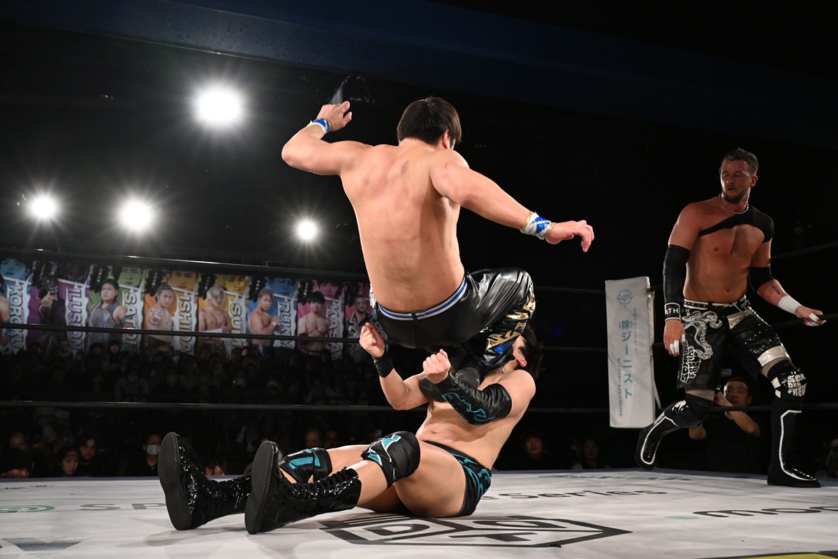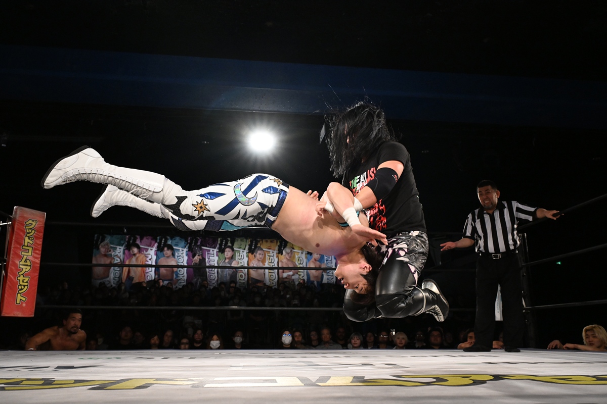 佐々木が上野にペディグリーからクロス・フェースロック。To-yのダイビング・ボディプレスはクリスがかわして自爆。本多がTo-yにツームストーン・パイルドライバー、HARASHIMAがスワンダイブ式ボディプレスもカット。クリスがTo-yにパイルドライバー、HARASHIMAが蒼魔刀を見舞うと、クリスがカバーして3カウントを奪取した。
