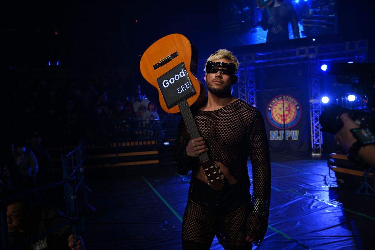 SANADAは入場時、「Good Bye NJPW」というメッセージが電光掲示板のように流れる特殊仕様のギターを携えて登場し、会場に不穏な空気を漂わせた。
