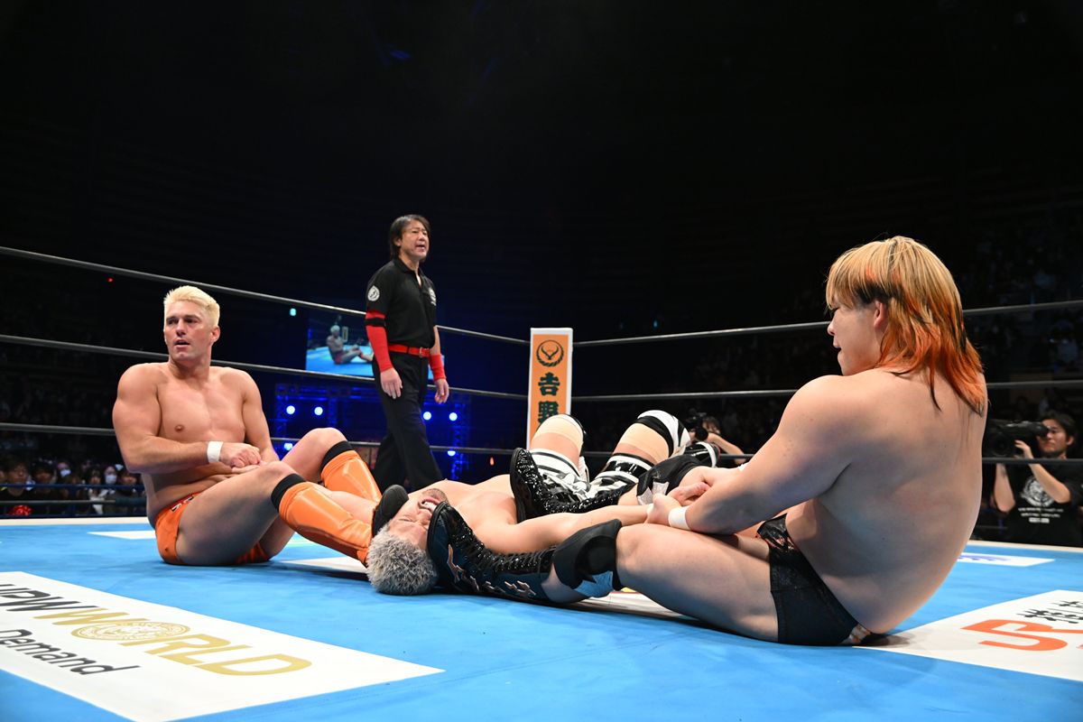 ザックと大岩は連携攻撃でOSKARを追い詰め、ダブルのブレーンバスターを炸裂させるが、王者のタフネスは驚異的だった。