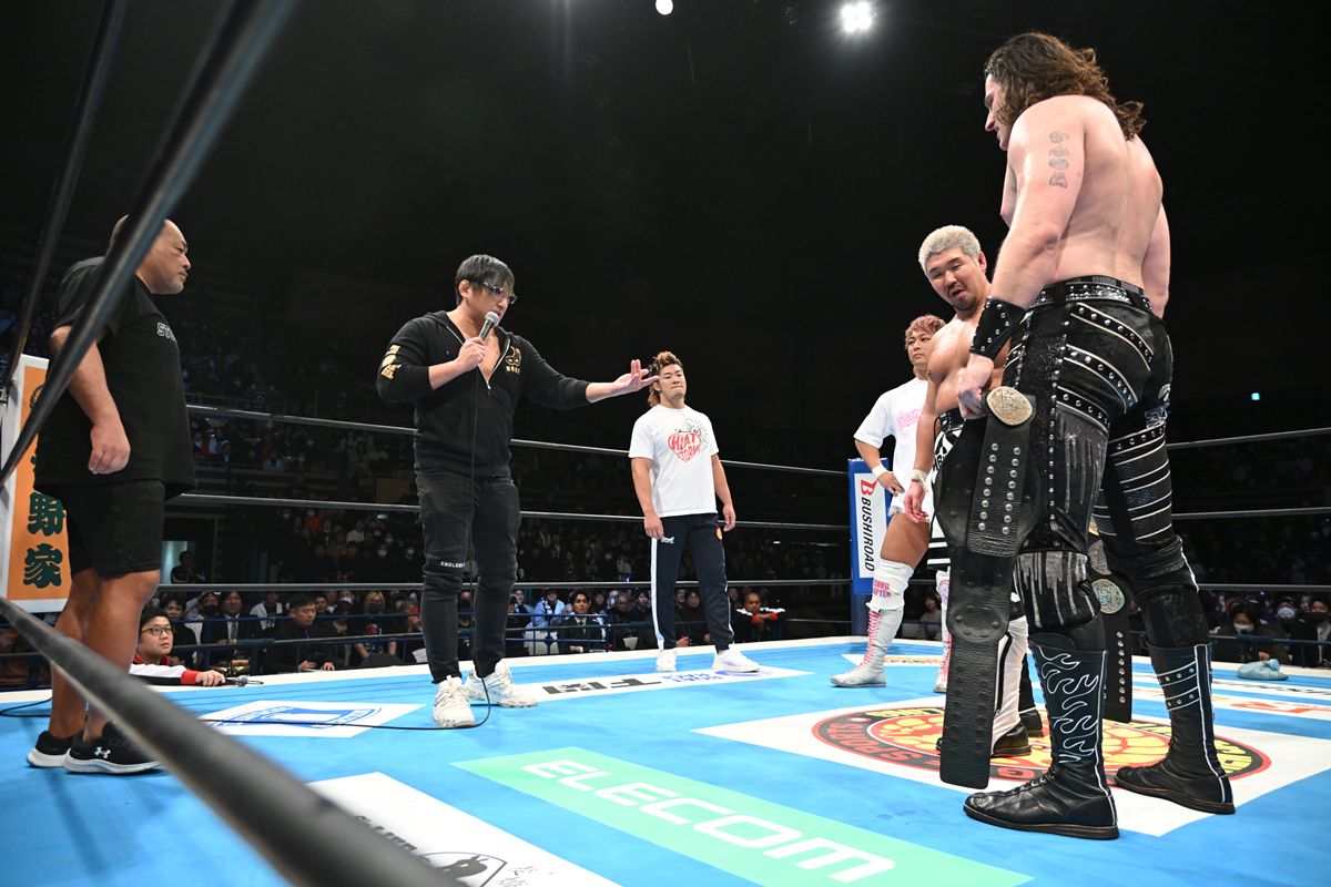 タイチは「聞いたか、この歓声。俺たちの存在、忘れてねぇか!? 俺たちが新日本プロレスの闘い教えてやるからよ。そのベルト返せ!」とマイクアピール。「まとめてかかって来い!」と王者を挑発した。