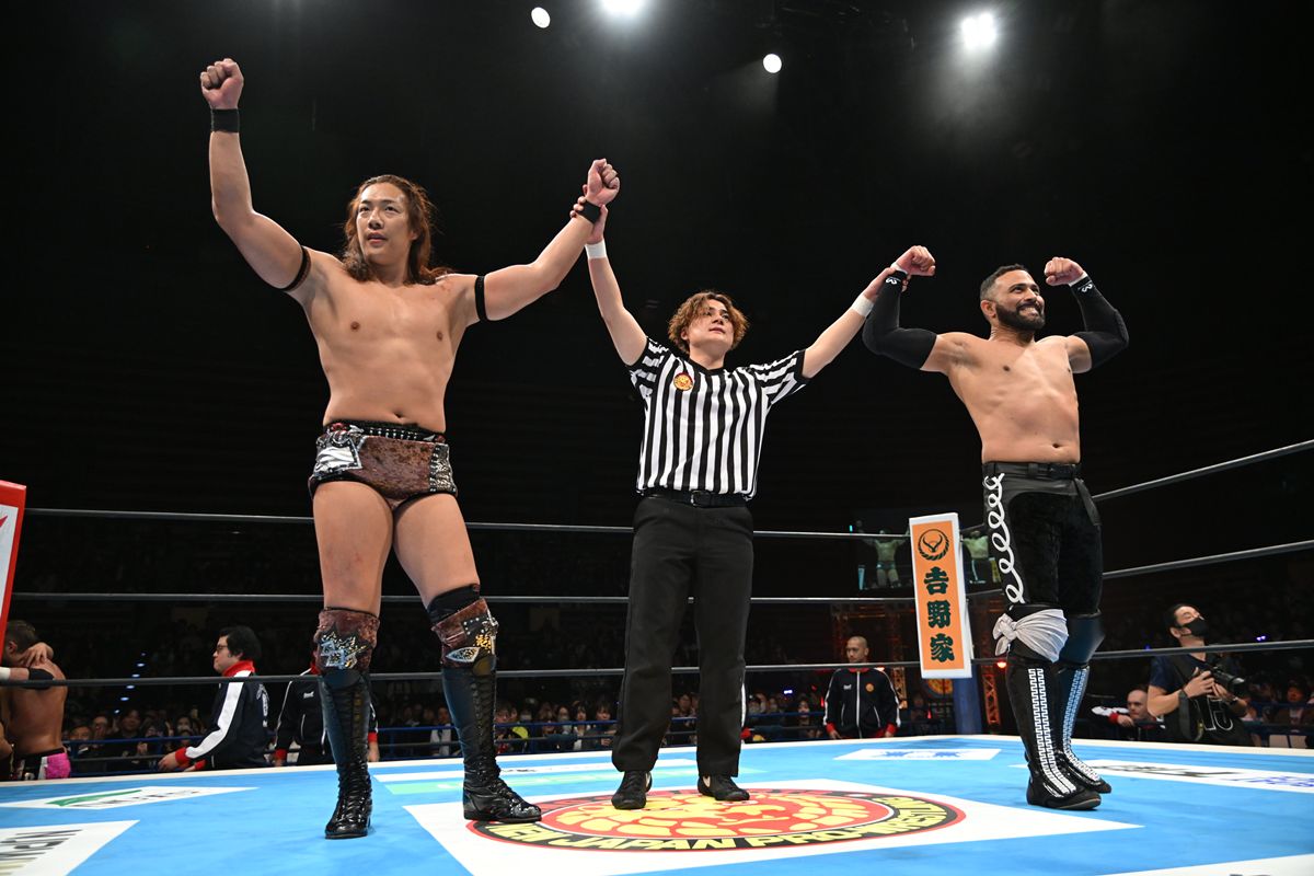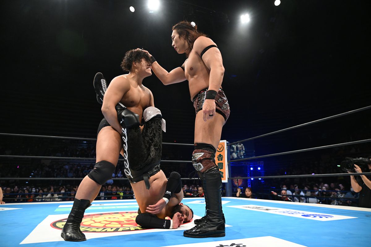 前日の1.4東京ドーム大会における激闘の余韻が残る中、IWGP世界ヘビー級王座から陥落したKONOSUKE TAKESHITAが再起戦に臨んだ。