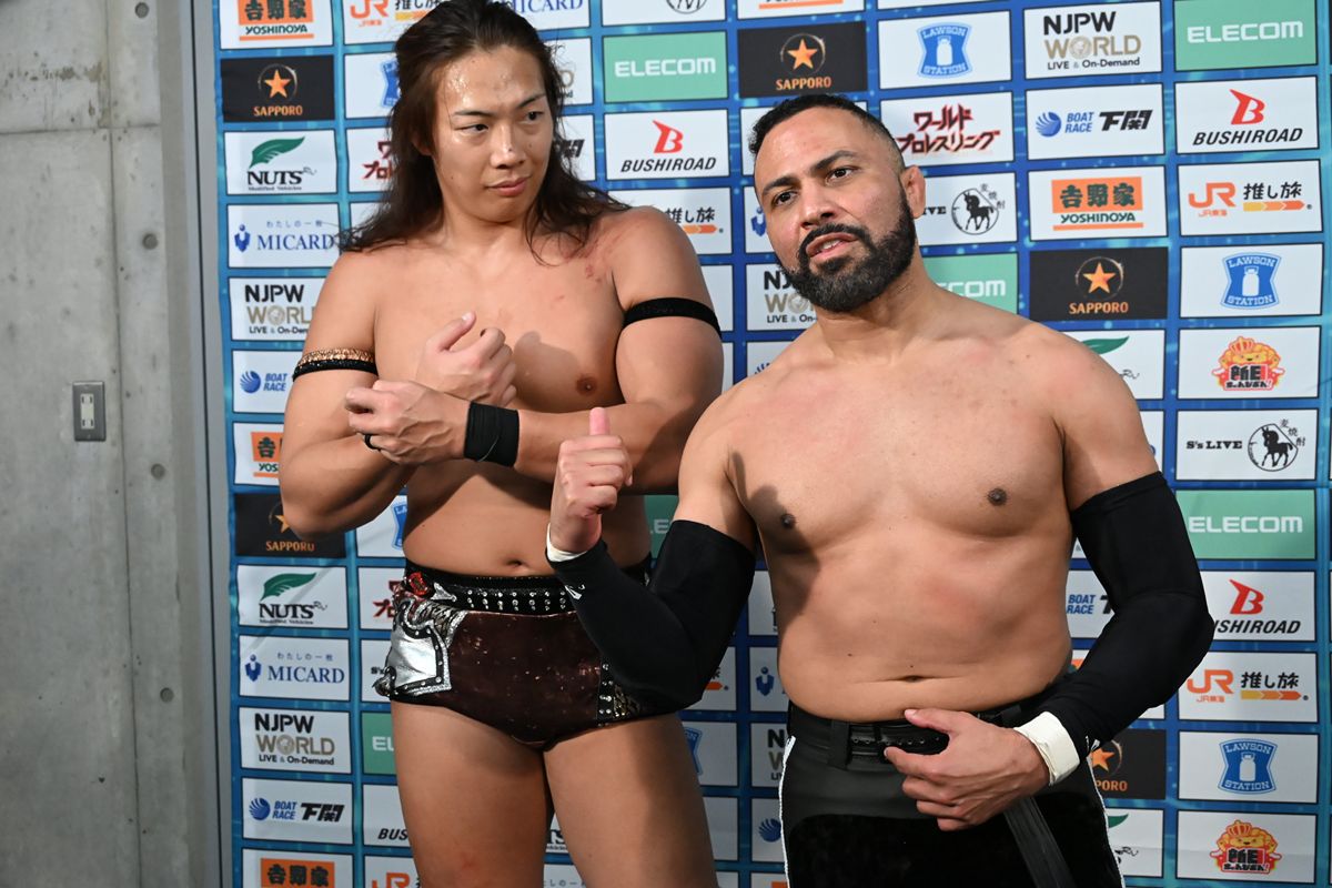 なお、試合後には不穏な空気も流れた。NJPW WORLD認定TV王座を防衛したばかりのファンタズモが、パートナーの嘉藤を場外へ放り捨てると、TAKESHITAに急接近。