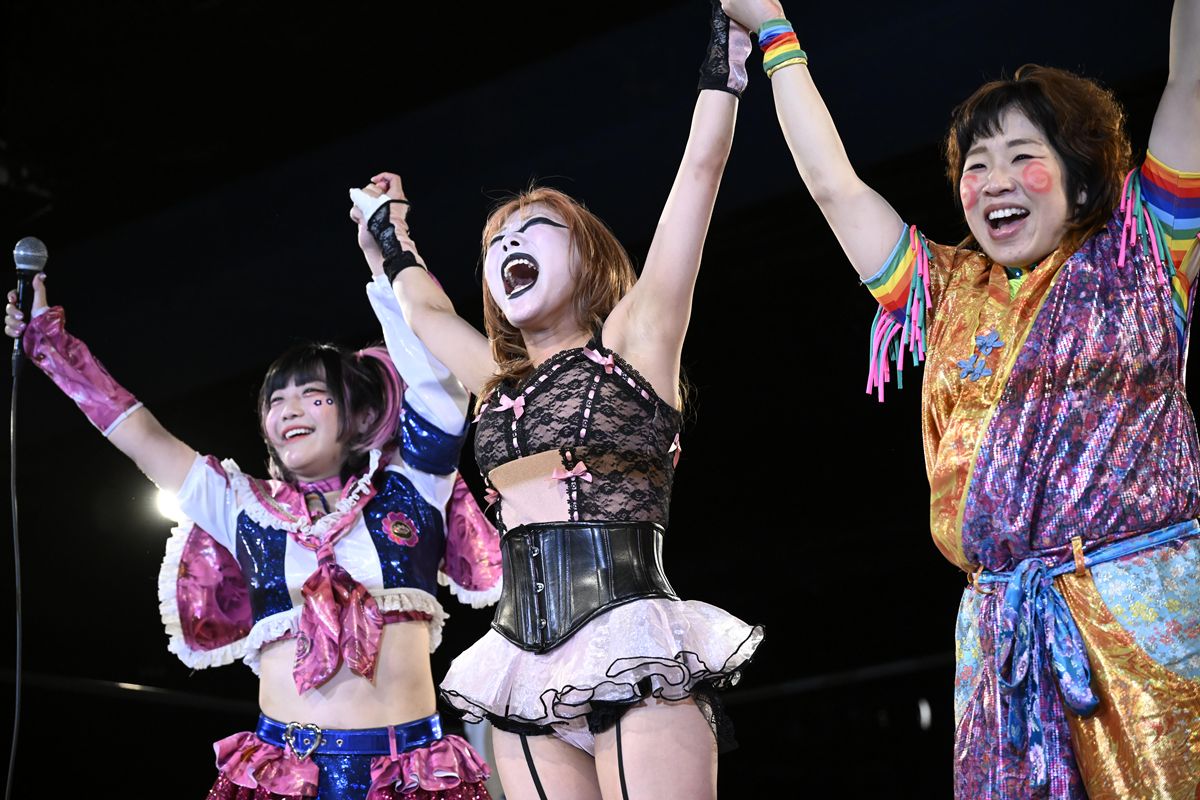 試合はラム会長、米山香織、花園桃花のトリオが連携を見せ、最後はラム会長が神姫楽ミサのセントーン自爆を誘って丸め込み勝利。