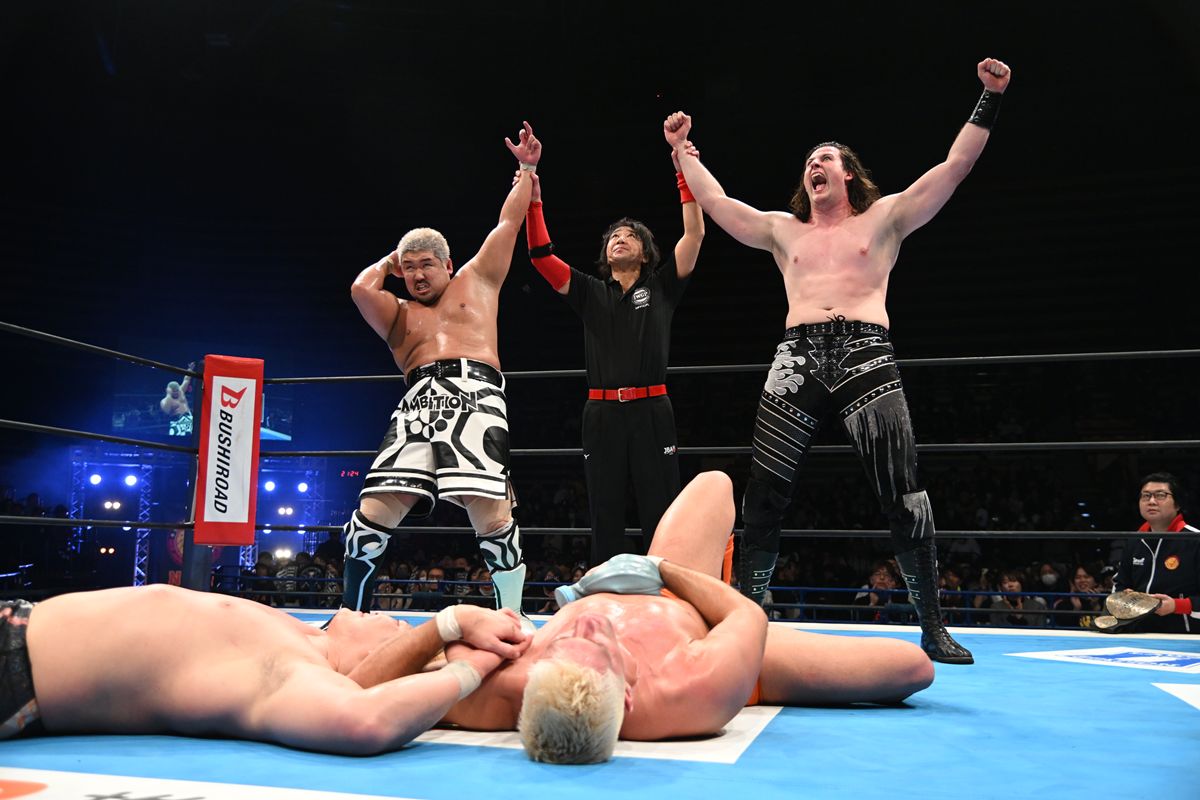 メインイベントで行われたIWGPタッグ選手権試合では、王者の“Knock Out Brothers(K.O.B)”Yuto-Ice&OSKAR組が、挑戦者のザック・セイバーJr.&大岩陵平組(TMDK)を撃破し、初防衛に成功した。