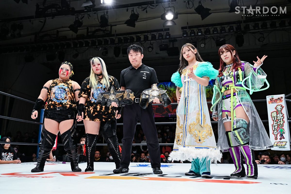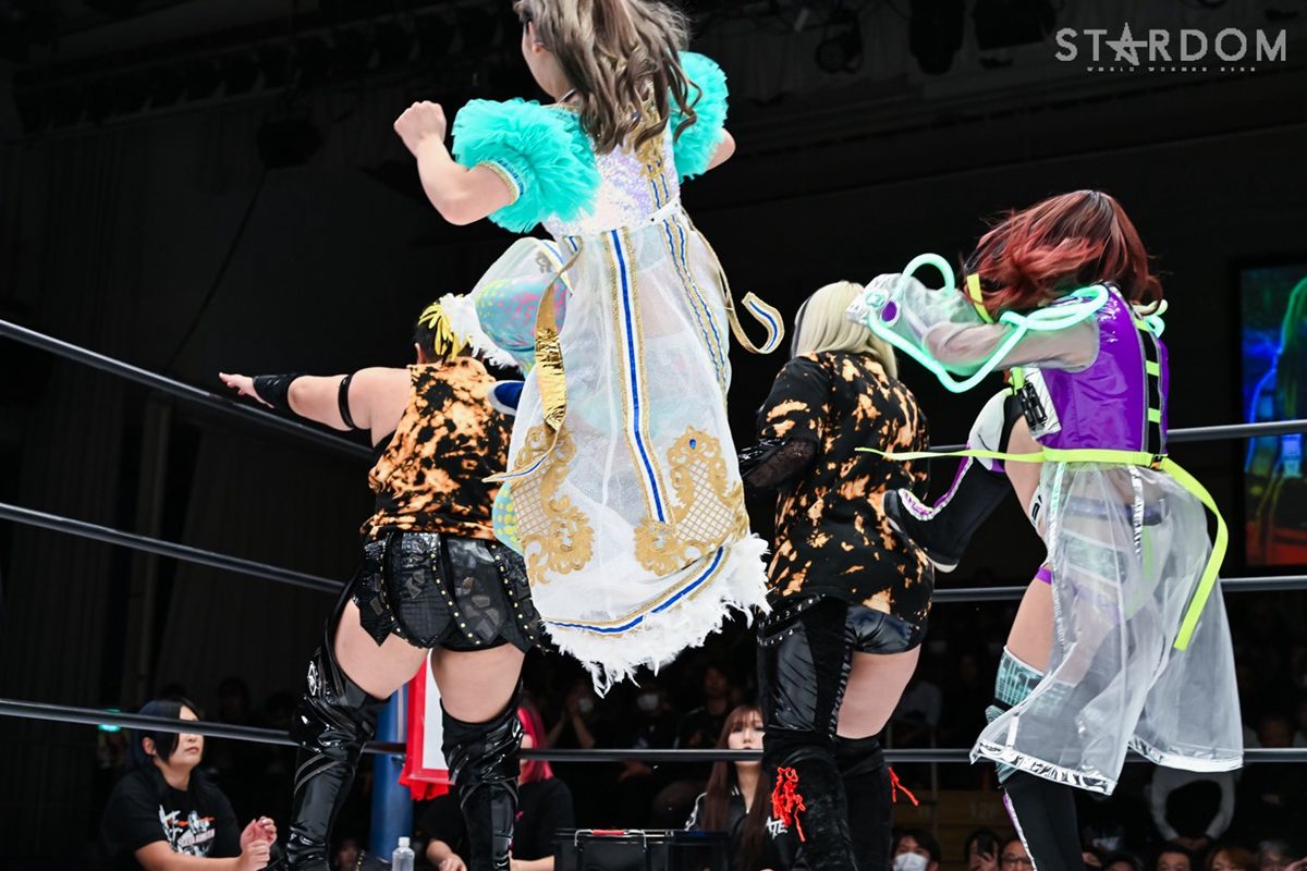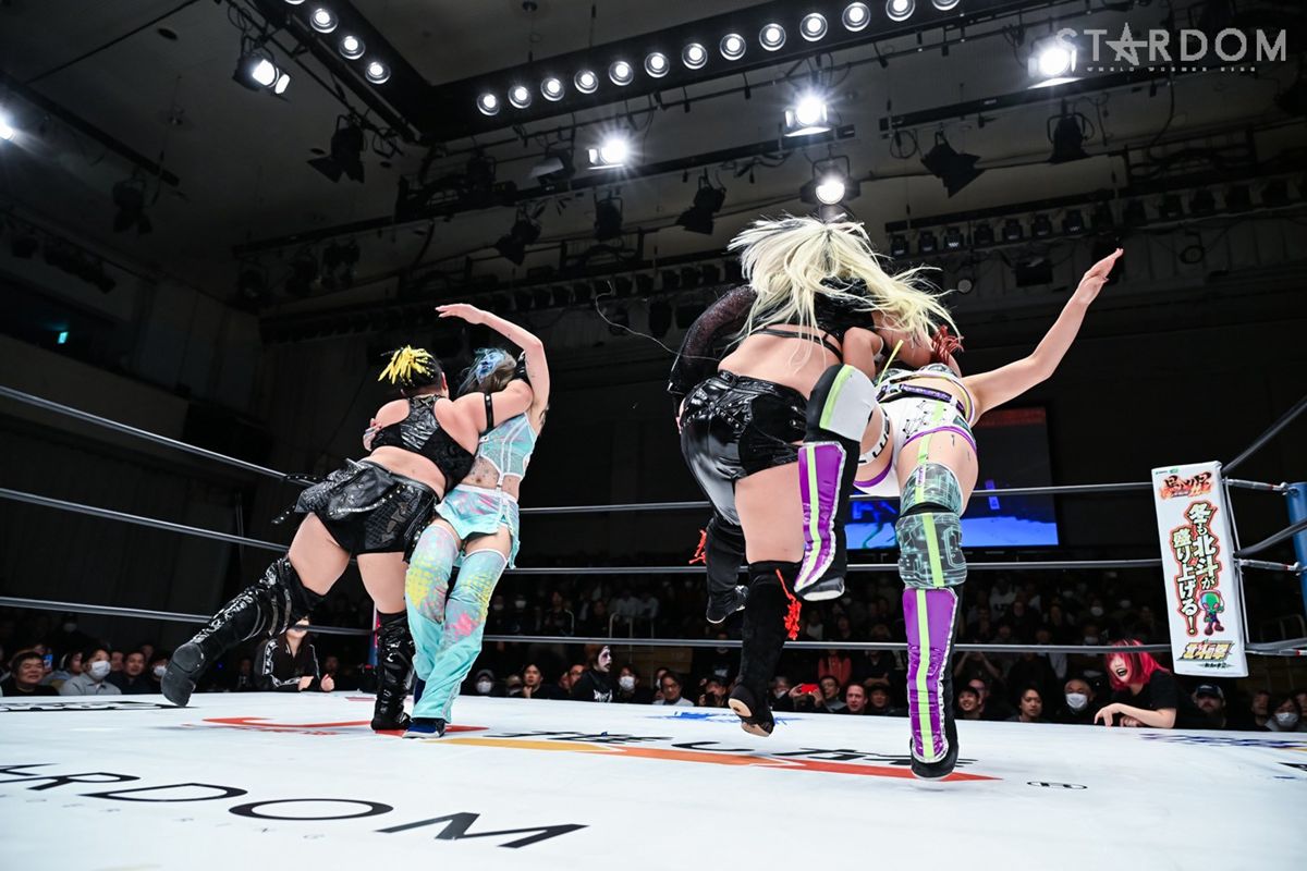 メインイベントではゴッデス・オブ・スターダム選手権試合が行われ、王者組の「H.A.T.E.」刀羅ナツコ&琉悪夏が、挑戦者組の「02line(オニライン)」AZM&天咲光由を退け、4度目の防衛に成功した。