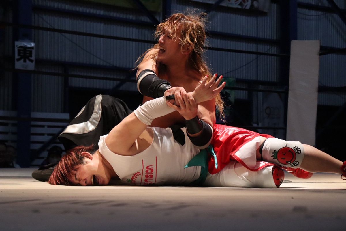 激しい攻防の末、最後は真霜が梶トマトを捕獲。必殺の関節技「無道」でギブアップを奪い、その強さを改めて見せつけた。