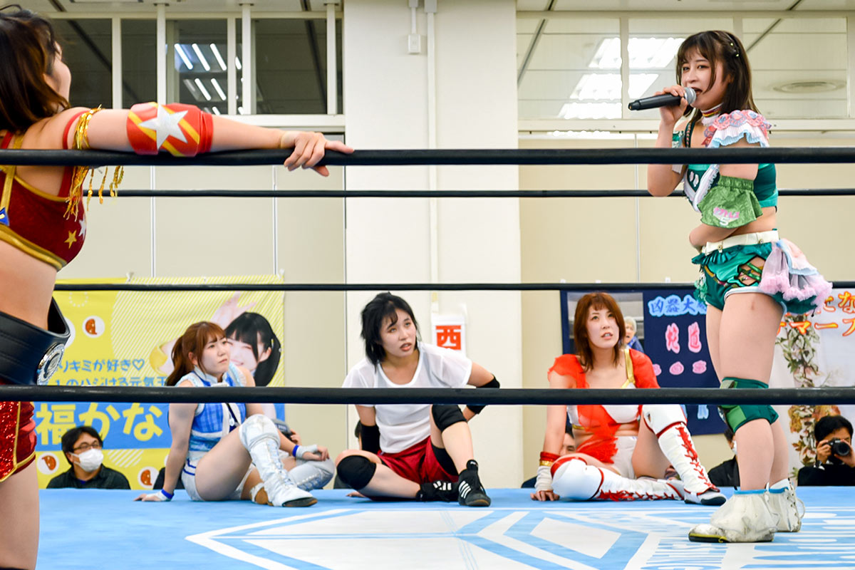 「個人の話をすると2年ぶりくらいのプロレスの試合ということで、正直とても怖くなりました。でも、いま試合が終わって、負けてしまったけど、こうしてリングの中央に立ててマイクを握れていることにホントにうれしく思います。そして、デビュー戦のみんながこれからプロレスの道に進むのか、それともこの日で終わってしまうのか、それぞれだと思ってます。私としては5月からずっとがんばってきた演劇を終えて、旗揚げを迎え、とても不思議な気持ちでいます。VENUS、やりたいという人がいたら、私はプロレス(団体を)やりたいです。演劇から始まったかもしれないけど、社長としてやりたい。いずれにしても演劇で出逢ってくれたみんな一人ひとりがそれぞれの人生を考えて、幸せな方向を選んでほしいなって思います。そこにVENUSの経験が活かされるのであれば、それはプロレスを続けていなくても続けてくれても、とても幸せなことです。プロレスに、みなみ飛香に、このリングに出逢ってくれてありがとうございます。とっても不思議な興行だったと思いますが、私はとっても楽しかったです。見届けてくれたみなさま、ホントにホントに、ありがとうございます!」