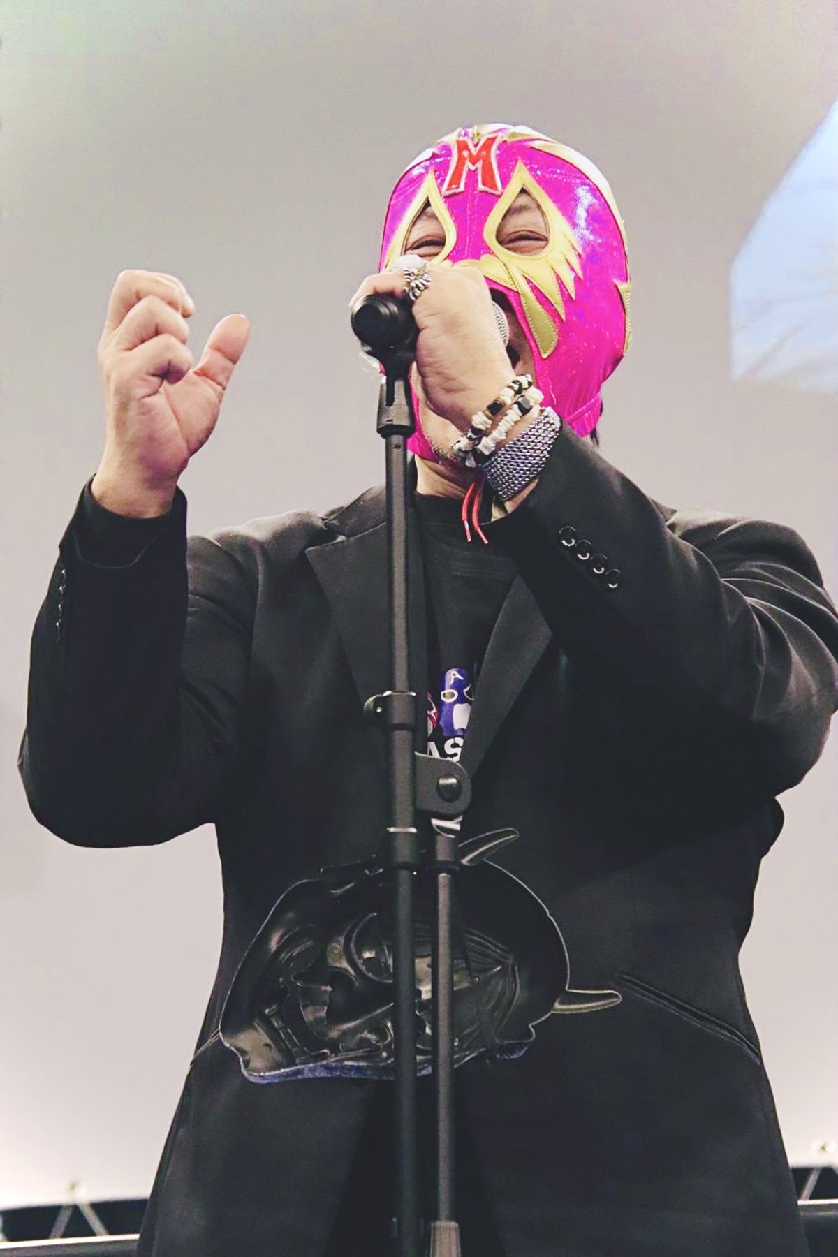 大仁田厚によく似たマスあつしは、1月18日に開催される、広島プロレスフェスティバルに参戦が告知されている、グレート・ニタからのメッセージを預かったとして、話し出した。