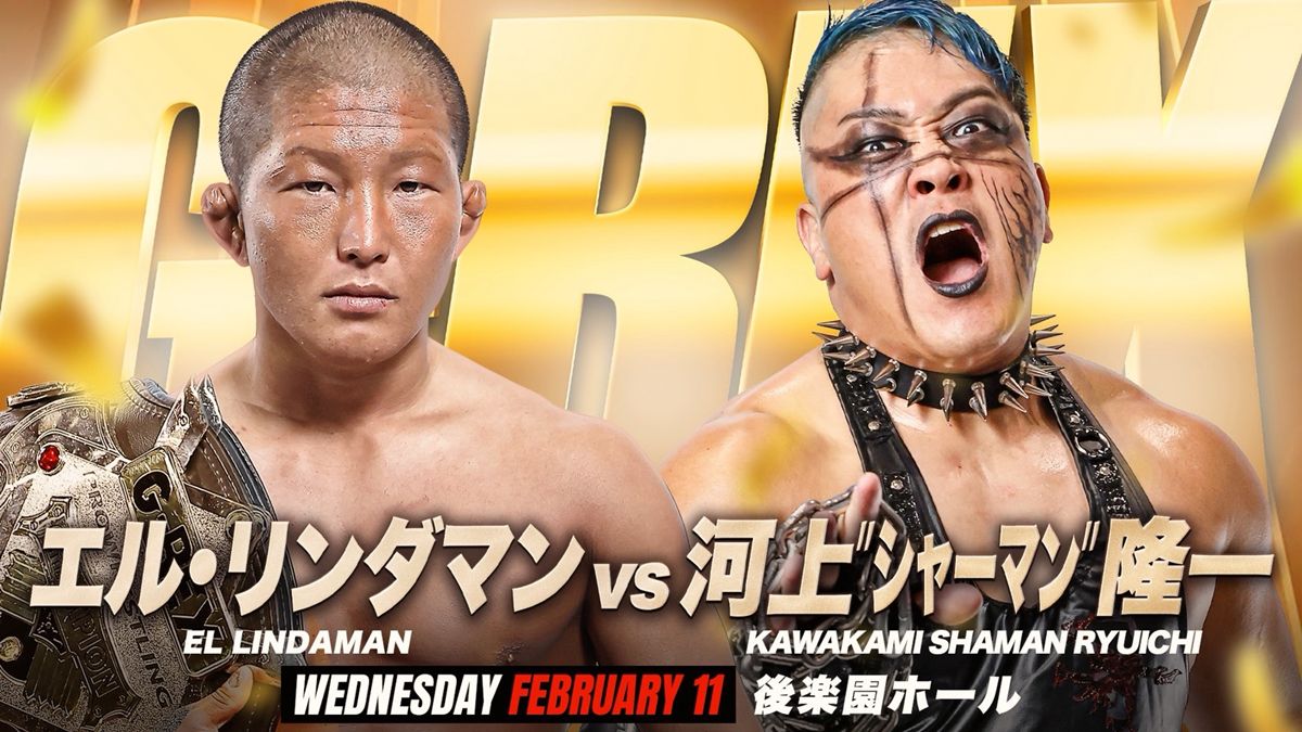 今年最初の聖地・後楽園大会のメインイベントとして、G-REX王者エル・リンダマンが、河上“シャーマン”隆一を迎え撃つタイトルマッチが正式決定した。