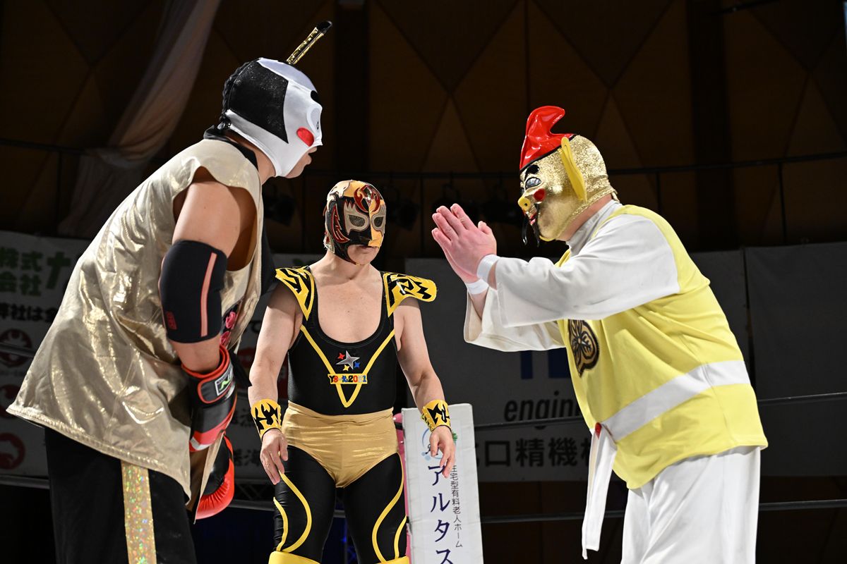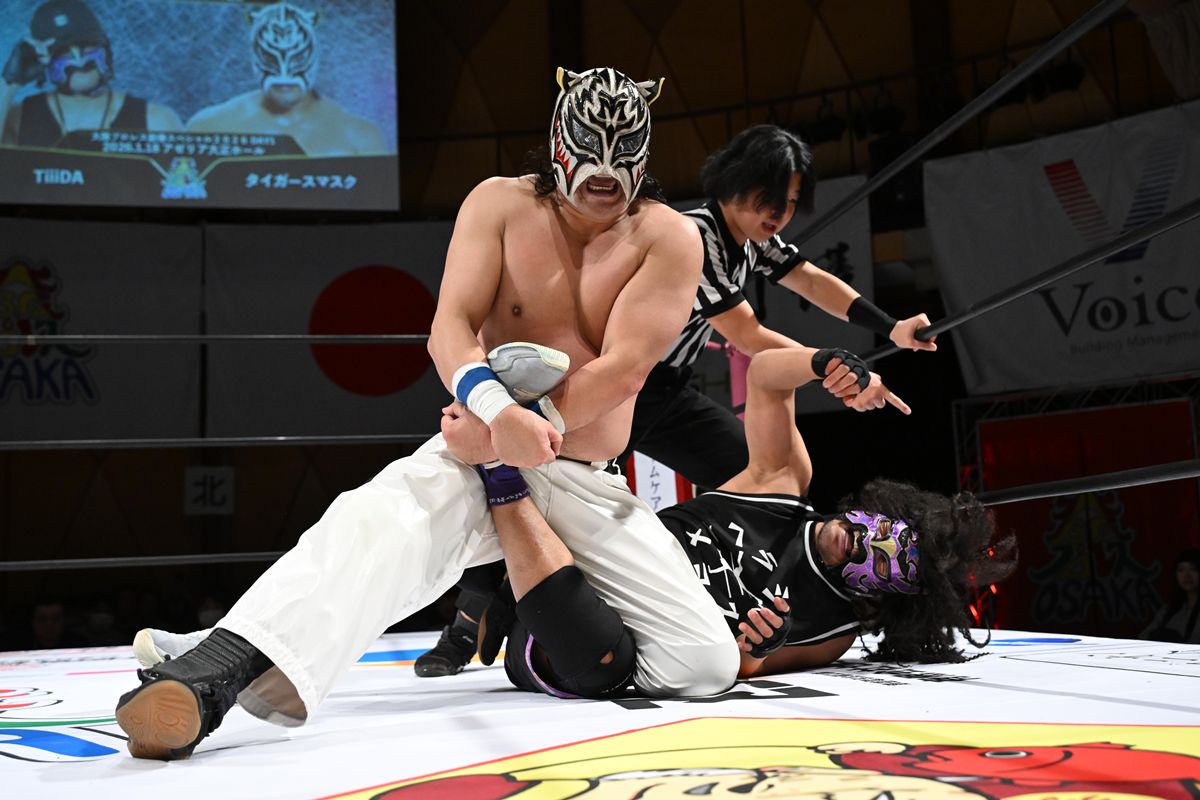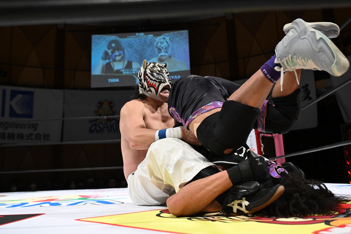 TiiiDAのアクロバティックな動きとラフ殺法に対し、タイガースは熟練のインサイドワークで対抗。最後はTiiiDAのウラカン・ラナを切り返し、エビ固めで技ありの勝利を収めた。
