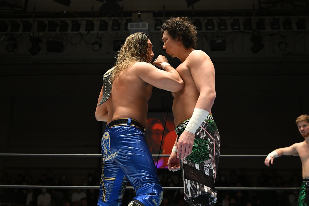 この一戦の焦点は、1.4東京ドーム大会後にIWGP世界ヘビー級王者・辻陽太を襲撃し、裏切りと暴走を続けるジェイク・リーの動向であった。
