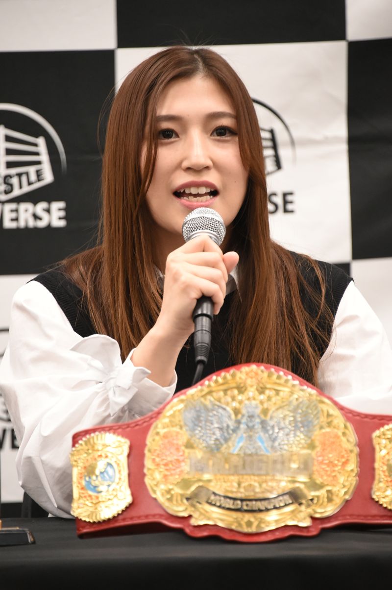 「メガトンは弱点でもあるが、生かせば最大の武器になる。この3人で初代王座を獲り、私は2冠王になる」と力強く宣言した。