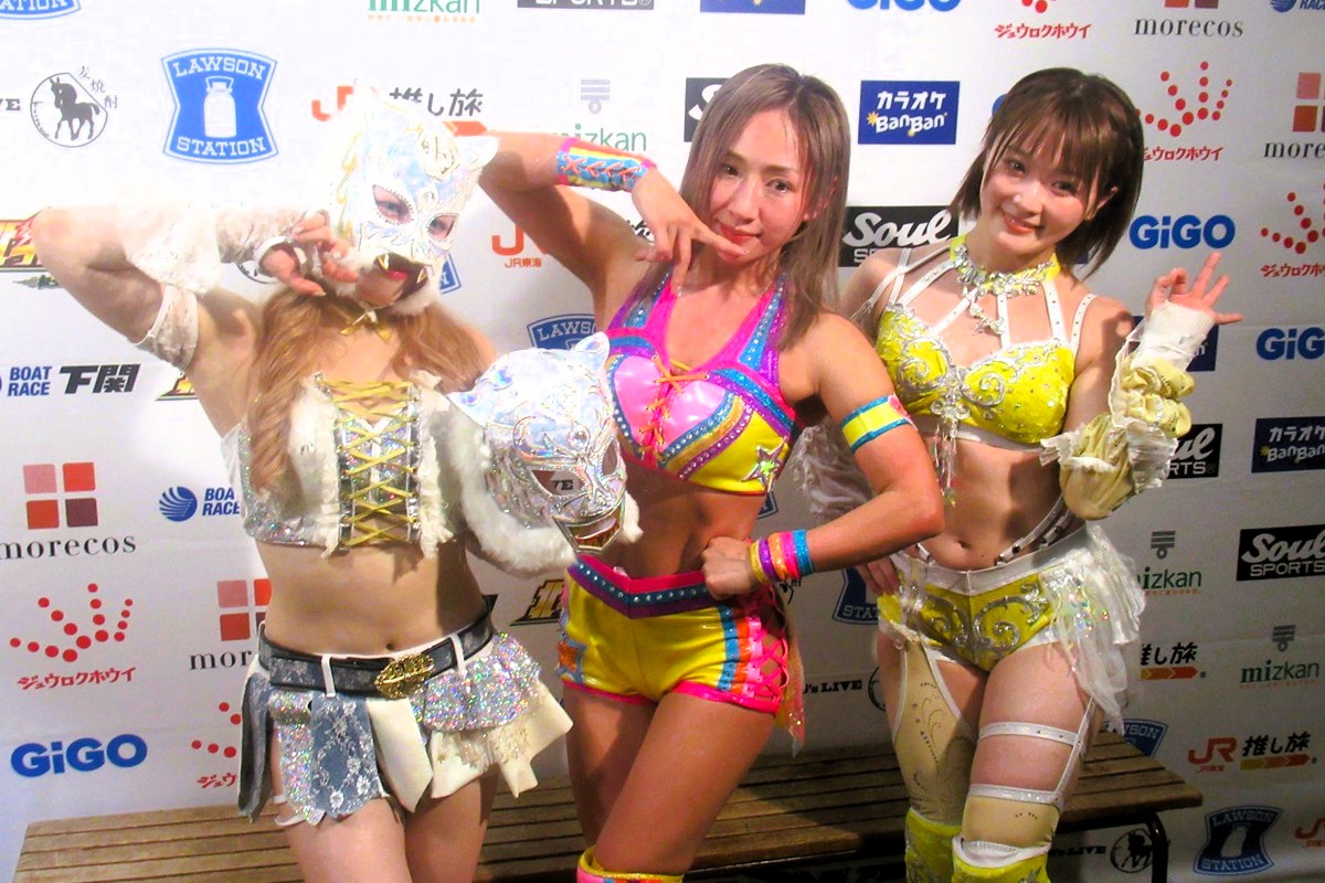 この日、愛川はなつぽい、スターライト・キッドとの豪華トリオでさくらあや&玖麗さやか&姫と対戦。愛川は得意の蹴り技で攻めていくも、姫もエルボー連打、張り手で猛反撃。愛川はかかと落とし5連発から張り手をぶち込むも、姫はカウント2で返した。さらになつぽい、キッドのアシストを得て姫にかかと落とし、シャイニング・ウィザードもカット。最後はタイガースープレックス・ホールドで姫から3カウントを奪った。