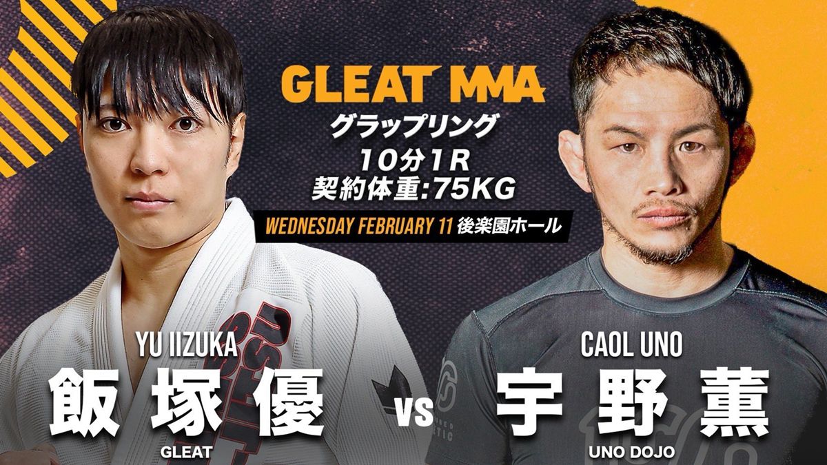 また、GLEAT MMA部門では、飯塚優と宇野薫によるグラップリングマッチ(75kg契約)が決定。