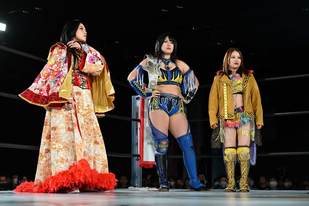 この日のセミファイナルでは、舞華&HANAKO&月山和香のEXVトリオが、MVLの鈴季すず&山下りな&青木いつ希と対戦。
