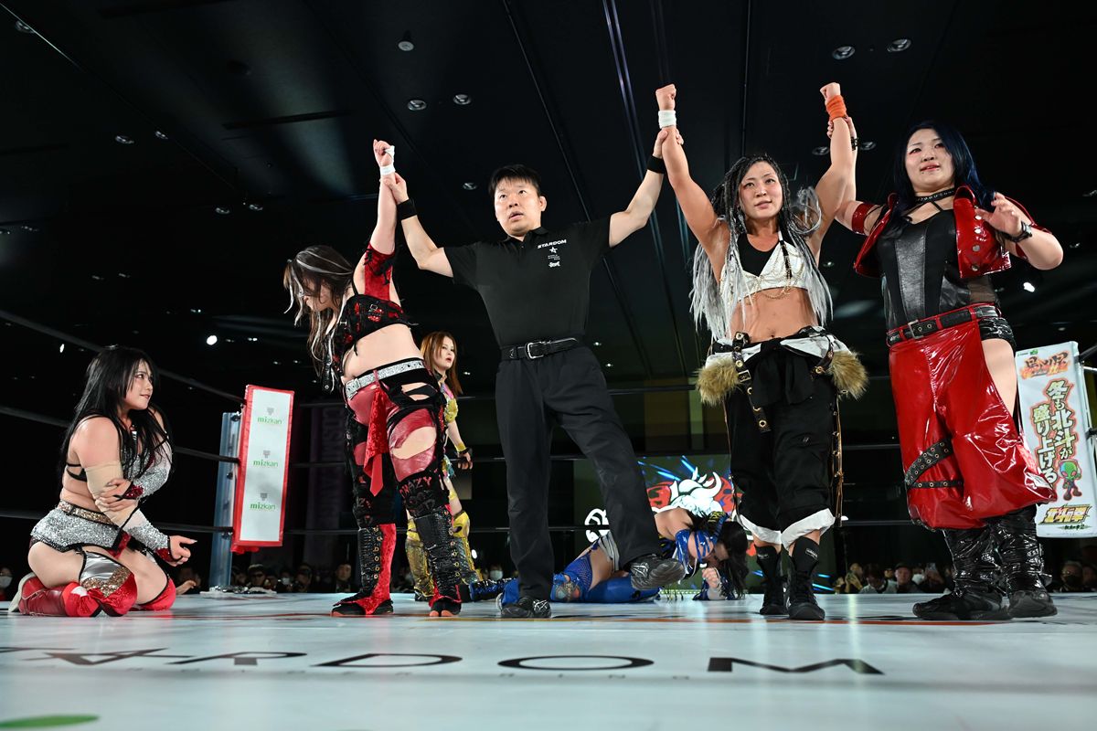 終盤、舞華が山下を雪崩式ブレーンバスターで叩きつけ、HANAKOが追撃の蹴りを見舞うなど猛攻を見せる。