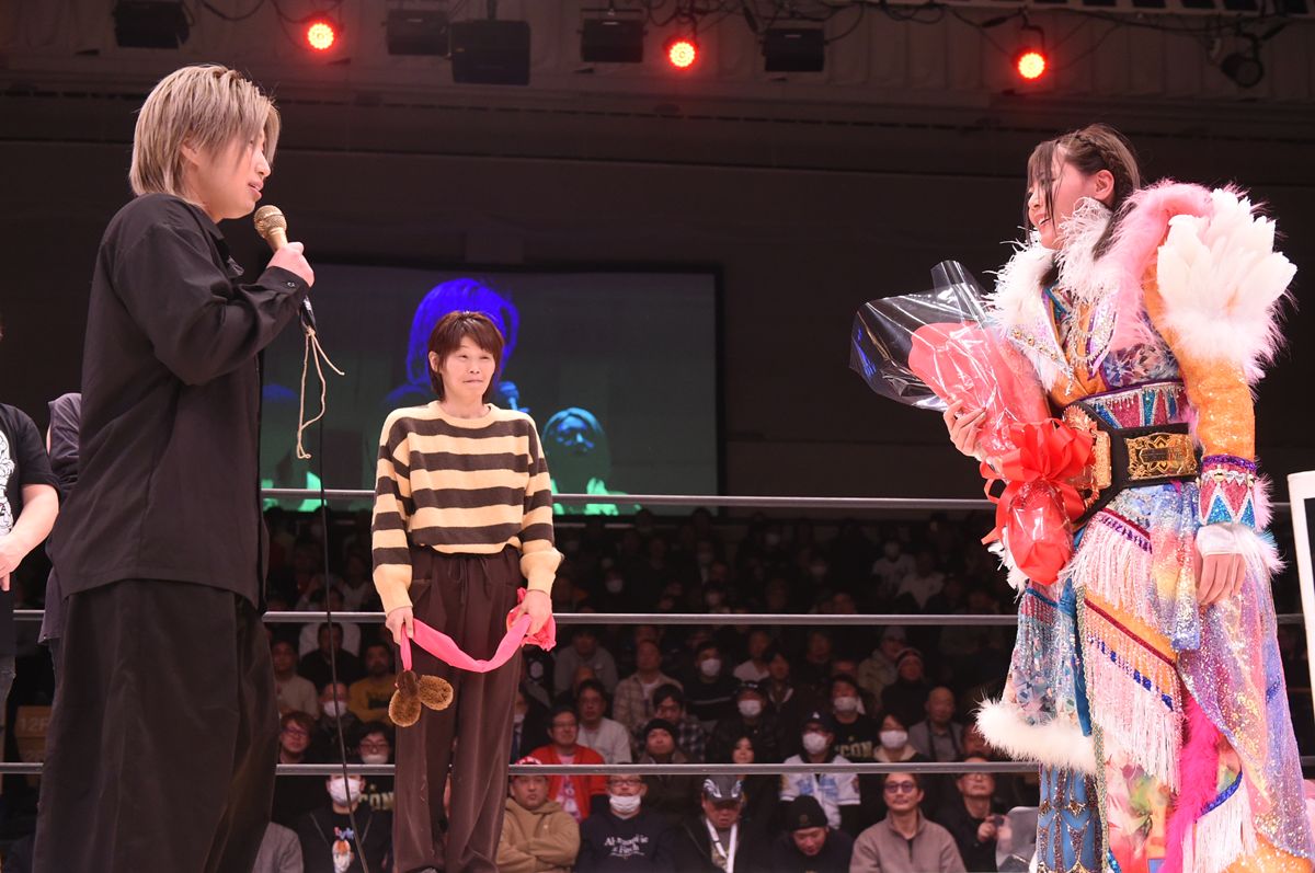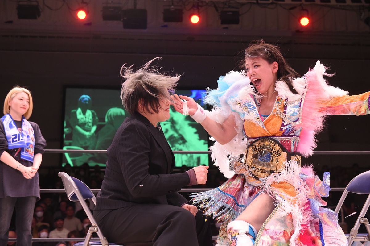 【マリーゴールド】岩谷麻優、デビュー15周年記念試合で林下詩美を撃破しGHC女子王座初防衛「プロレスと共に歩んでいく」ロッシー小川代表への“毒舌”も炸裂