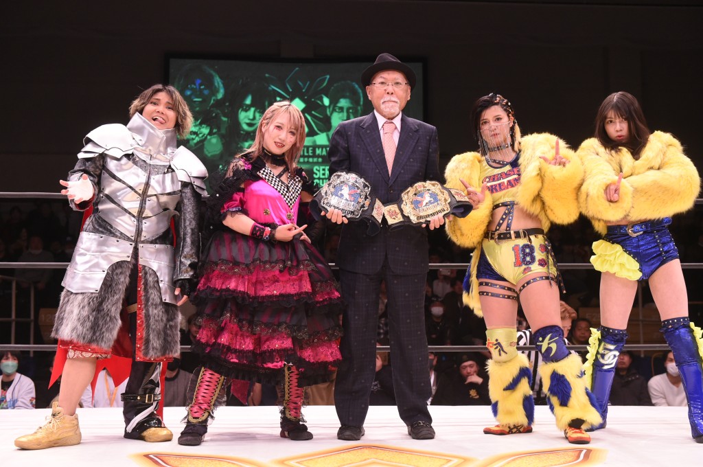 ツインスター選手権試合において、王者組の松井珠紗、CHIAKI組が、勢いに乗る若手の山岡聖怜、心希組を退け、4度目の防衛に成功した。