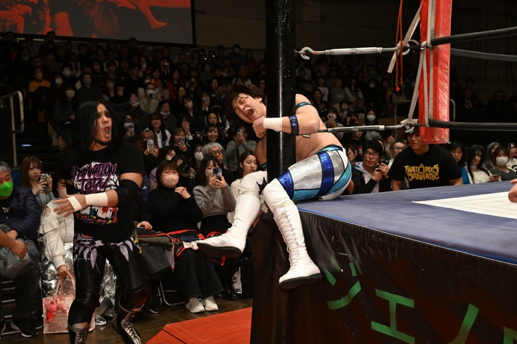 ここで今林久弥GMが次期防衛戦は3・22後楽園となることをアナウンスし、「戦いたい相手はいますか?」と問うと、ストレンジ・ラブ・コネクションのMCであるKIMIHIROがKANONを呼び込んだ。KANONは「上野さん、DDTのテッペン獲りに来ました。俺はDDTの生え抜きじゃないけど、4年間DDTに参戦して、めちゃくちゃ日に日にDDTが大好きになってます。そんな大好きな団体のトップのベルト欲しいじゃないですか。ちょっと傷心なとこ申し訳ないけど、そのKO-D無差別級、挑戦させてください」とアピール。