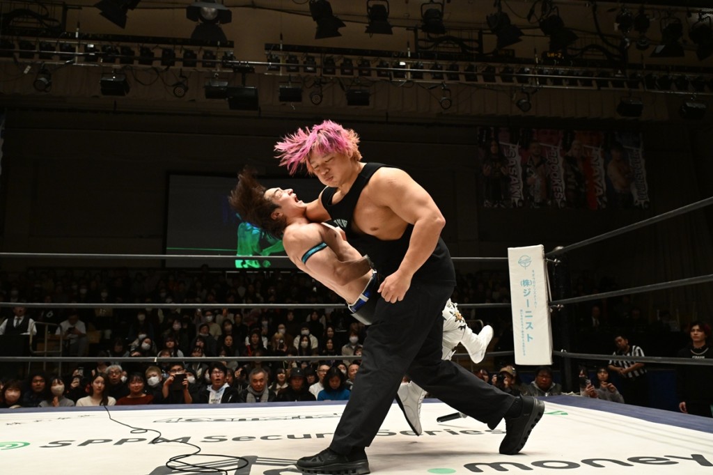 2・22後楽園では武知海青の2周年記念試合で一騎打ちに臨むが「海青も(欠場で)悔しいよな。俺も2週間前に感じたよ。今日も悔しい思いもいっぱいしたよ。でも進んでいくから。来月もどうなるか分からんけど、楽しいシングルマッチしようや。俺ももちろん勝つこともあれば負けることもあるかもしれない。でも、そんなこと構わずやるよ。プロレスラーだから。プロレスラーだから負けへんよ」と気を引き締めた。