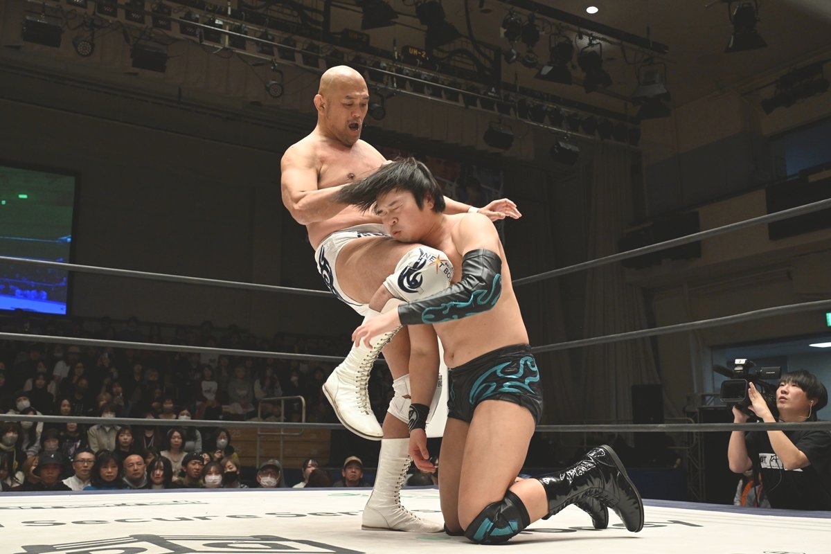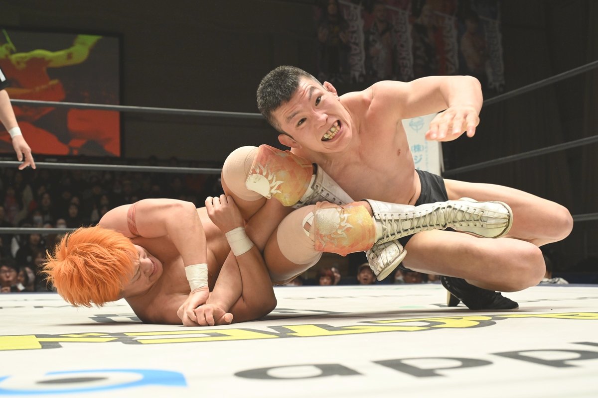 DDTプロレスは1月25日、東京・後楽園ホールで「MISSION IN BATTLE~新春絢爛~」を開催した。感染性結膜炎のため、大会2日前に欠場が決まった武知海青(THE RAMPAGE)の“代打”として緊急出陣したTo-yがKONOSUKE TAKESHITA&秋山準を相手に敗れたものの大奮闘した。