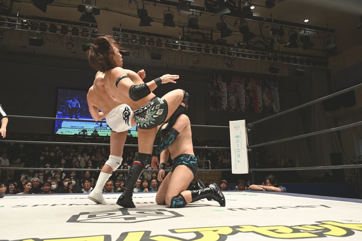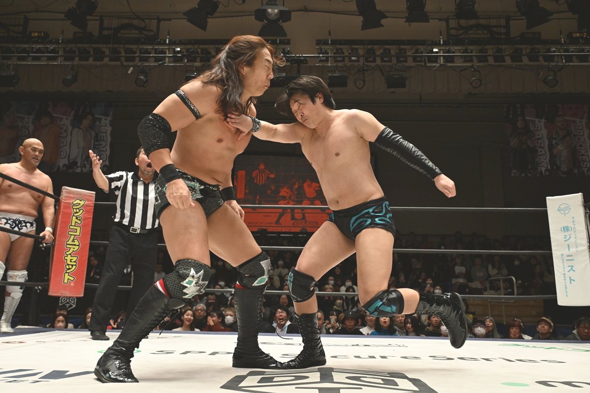 TAKESHITAがTo-yに延髄ラリアットを見舞うと、To-yは張り手をぶちかました。HARASHIMAがTAKESHITAにリバース・フランケンシュタイナー、串刺し式蒼魔刀。To-yはコジマインパクトもフォールはならず。ならばとTo-yはコジマワンダーランドを狙うも、切り返したTAKESHITAはラストライド。TAKESHITAと秋山がTo-yにダブルのニーリフトをぶち込むもカット。TAKESHITAは強烈なエルボーを叩き込むも、To-yは死力を振り絞ってカウント2で返した。最後はTAKESHITAが渾身のワガママを繰り出して3カウントを奪った。