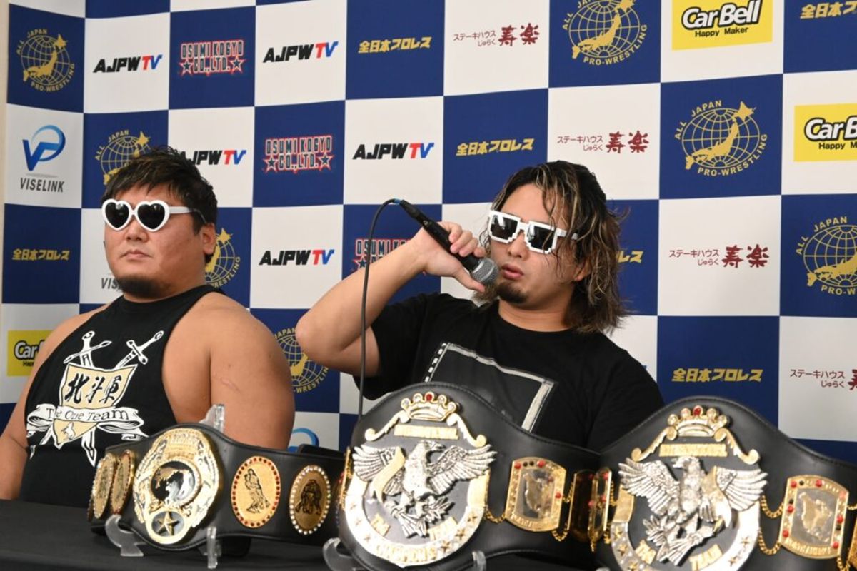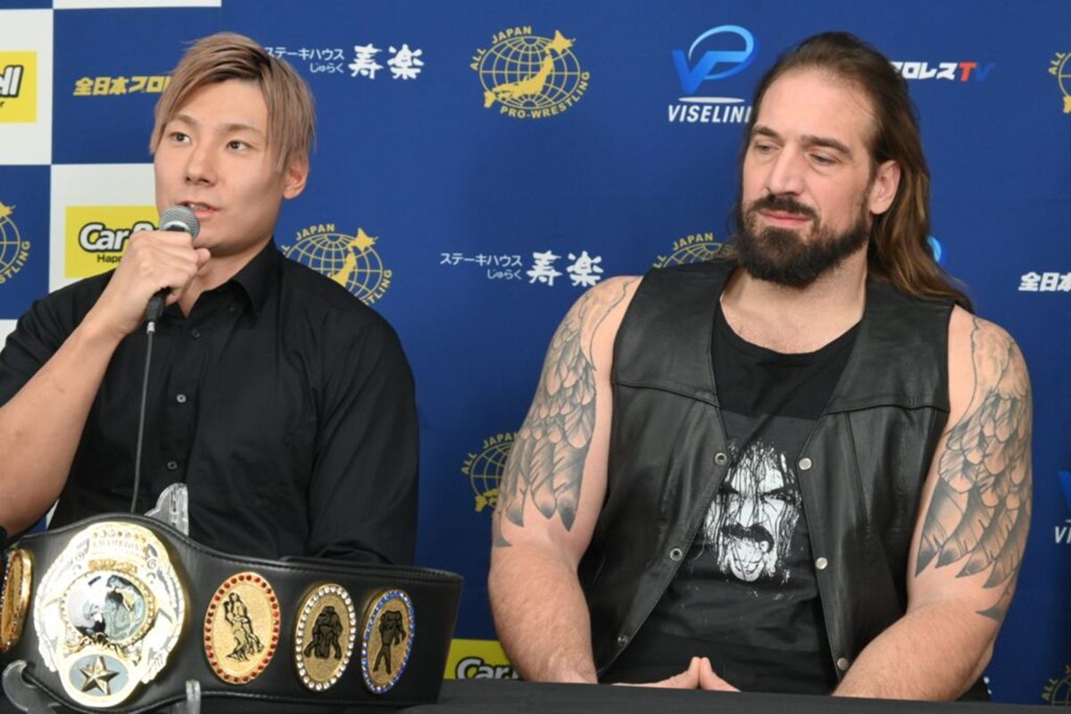 全日本プロレスは2月1日(日)に沖縄県立武道館で開催される「エキサイトシリーズ2026」沖縄大会にて行われる世界タッグ選手権試合に向けた記者会見を行った。