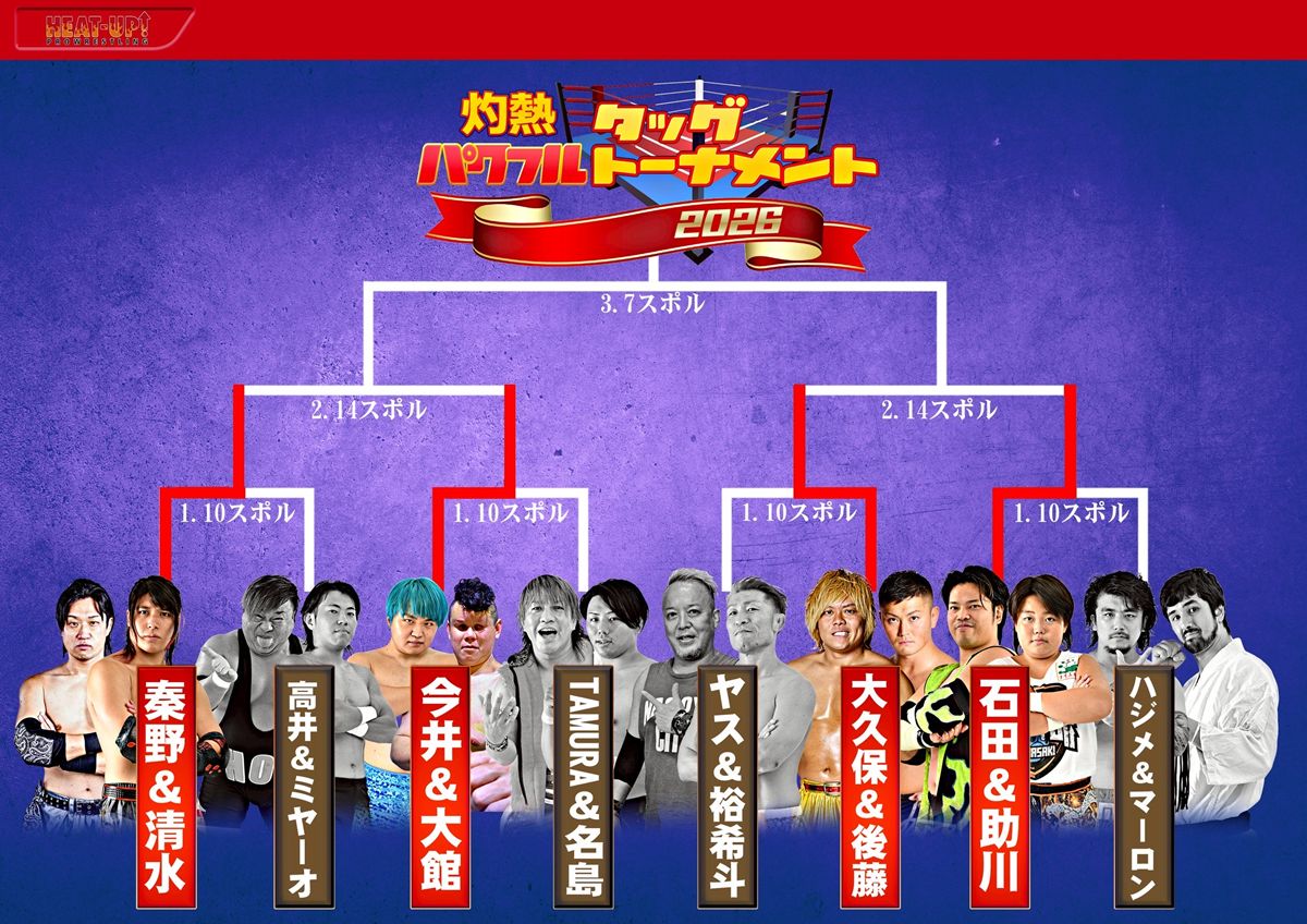 プロレスリングHEAT-UPは、2月14日(土)に名古屋スポルティーバアリーナで開催する「パワフルタッグトーナメント2026~準決勝~」の全対戦カードを発表した。