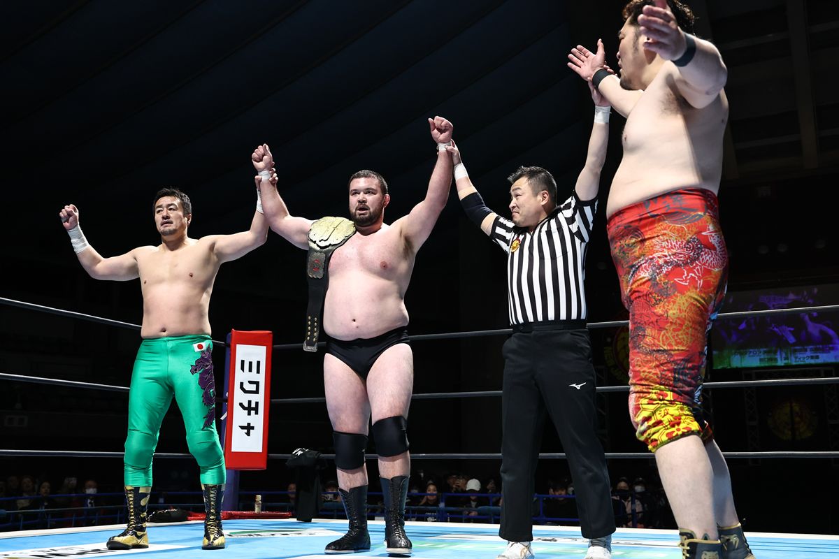 シリーズも中盤戦を迎え、2月11日の大阪府立体育会館大会でのビッグマッチへ向けた機運が盛り上がる中、第4試合ではNEVER無差別級王座を巡る注目の前哨戦が組まれた。
