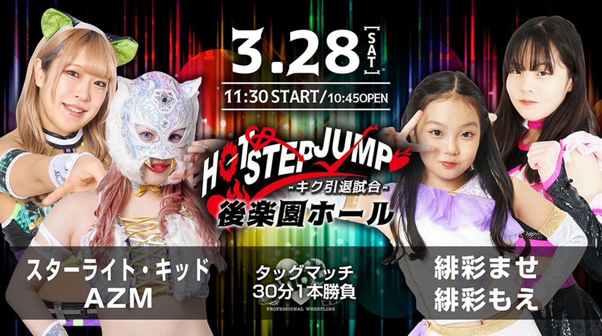 スターダムからスターライト・キッド&AZMの強力コンビがhotシュシュ後楽園大会に参戦し、緋彩ませ&緋彩もえと対戦するタッグマッチ30分1本勝負が組まれた。