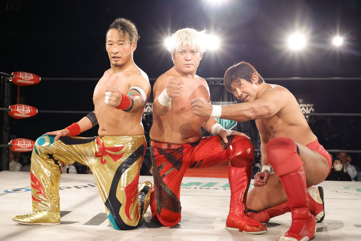 GHCタッグ王者組である「丸拳」こと丸藤正道&拳王が、レジェンド・船木誠勝とトリオを結成し、橋本大地&望月成晃&佐藤光留の連合軍と対戦した。