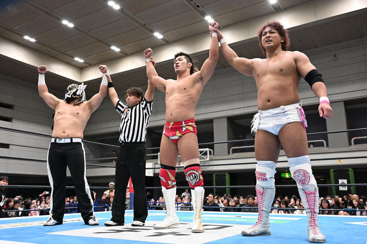 最後はデスペラードが永井の粘りを断ち切り、スパインバスターからのピンチェ・ロコで3カウントを奪取。