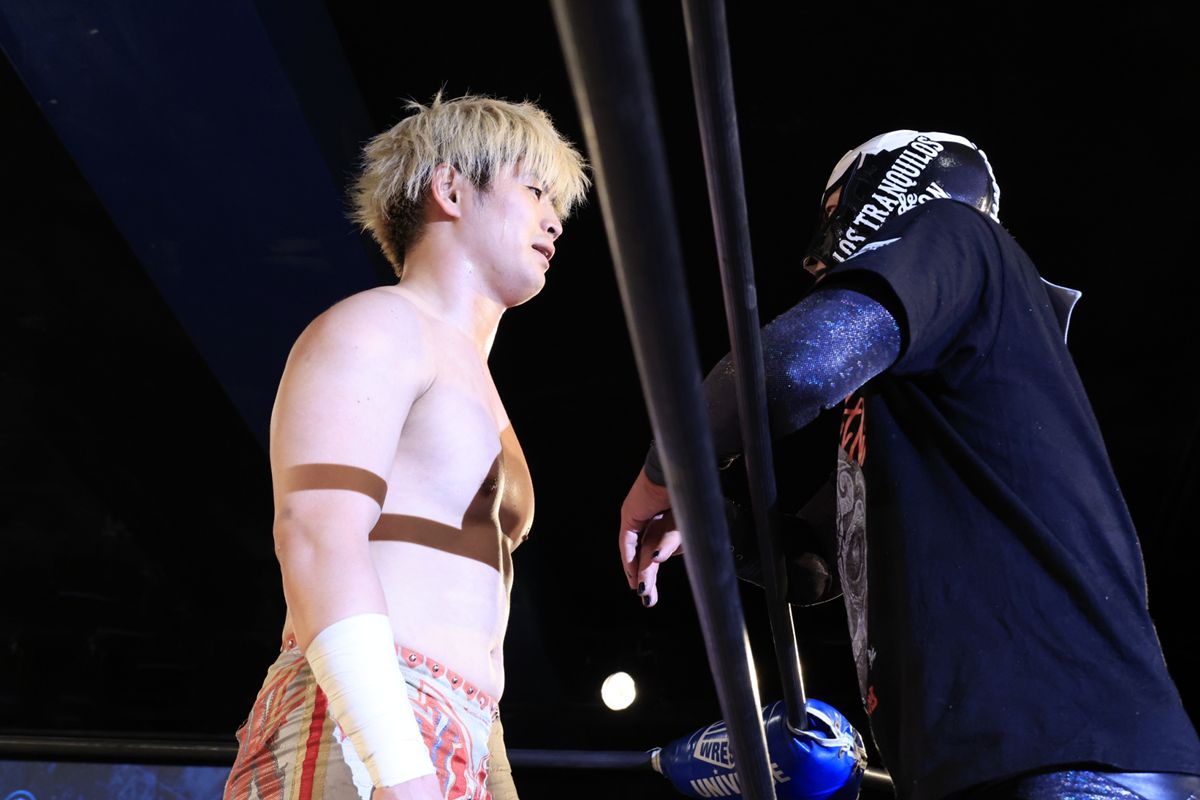 月曜夜のリングに魔法をかけるこの大会のセミファイナルでは、清宮海斗と「ロス・トランキーロス・デ・ハポン(LTJ)」のBUSHIによる注目の遭遇が実現した。