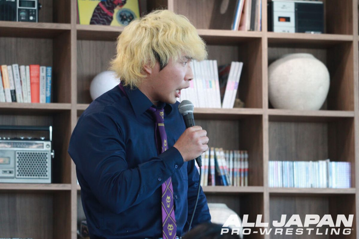 対戦相手となる大日本プロレスの関札皓太&さくだとしゆき組に対し、「ここは全日本プロレスだというのを忘れて、矢でも鉄砲でも持ってこい」と挑発。