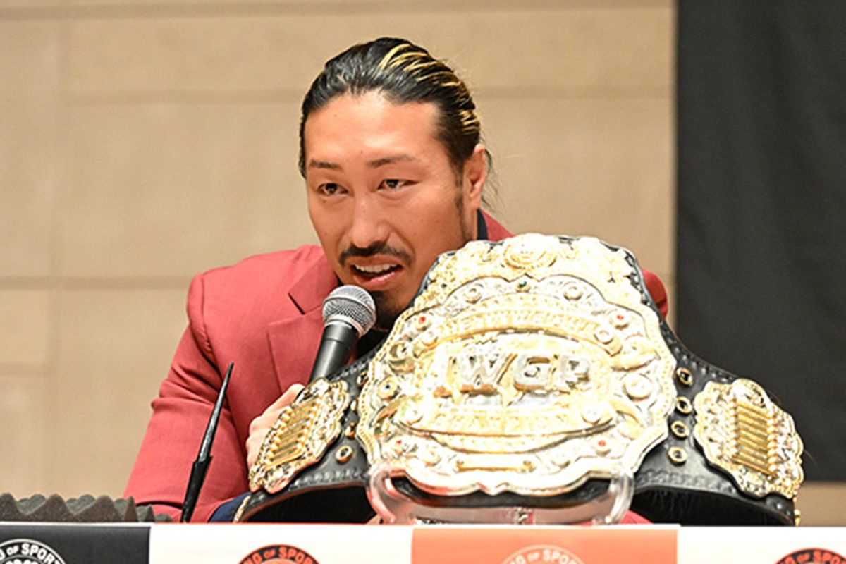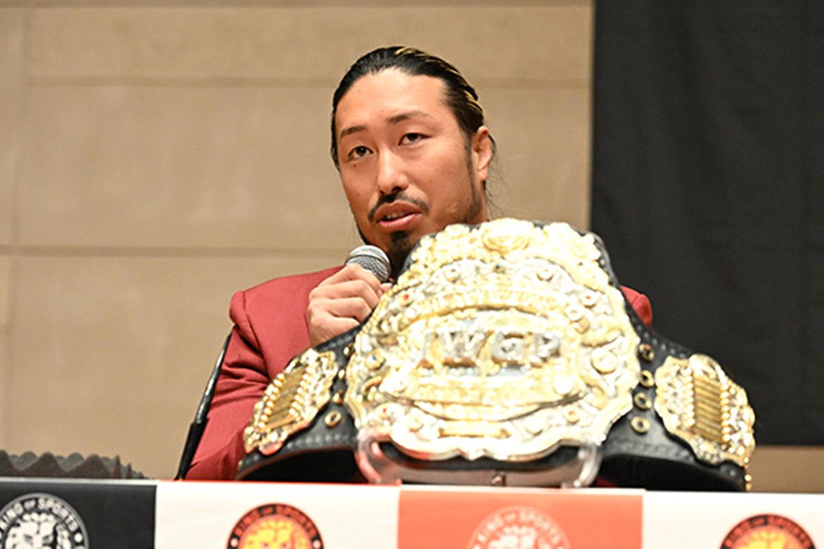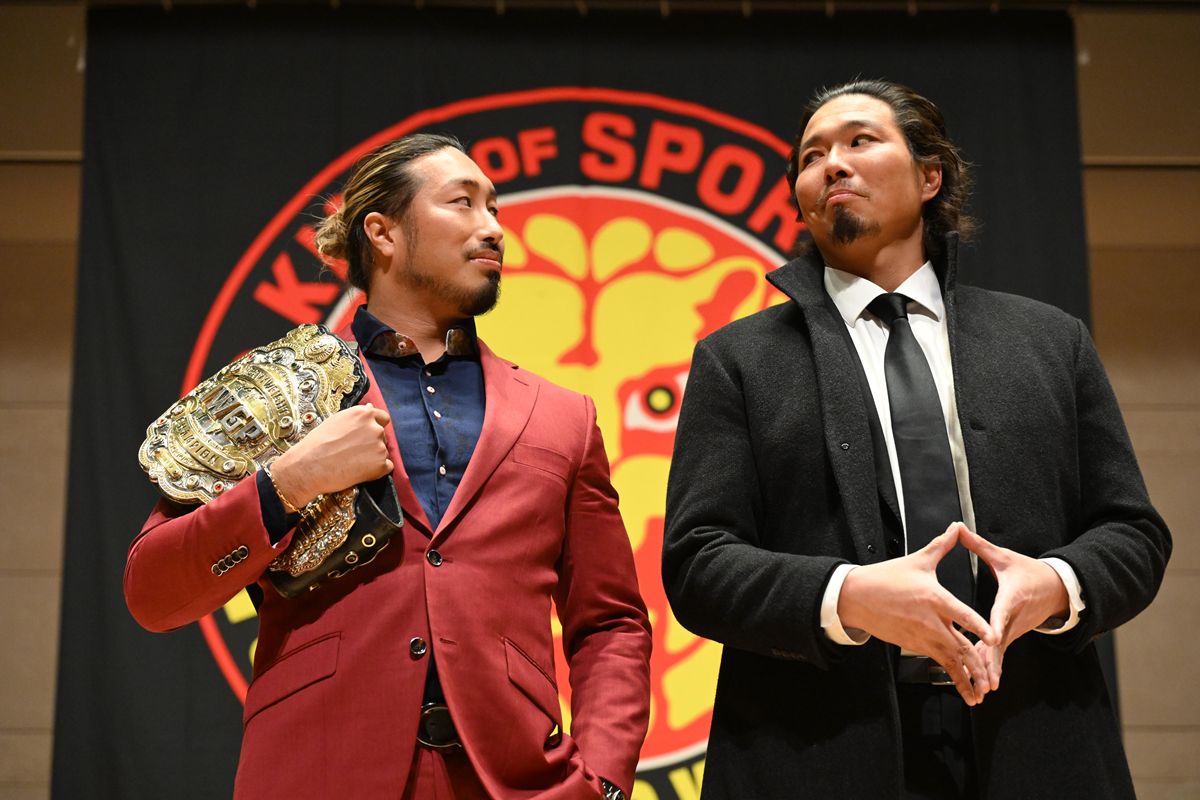 メインイベントのIWGPヘビー級選手権試合で激突する王者・辻陽太と挑戦者・ジェイク・リーが出席。