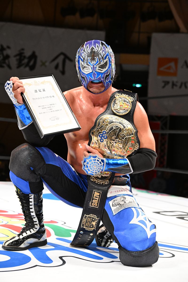 終始防戦一方となったスパイダーだが、苦労の末に奪取したベルトを易々と明け渡すわけにはいかない。