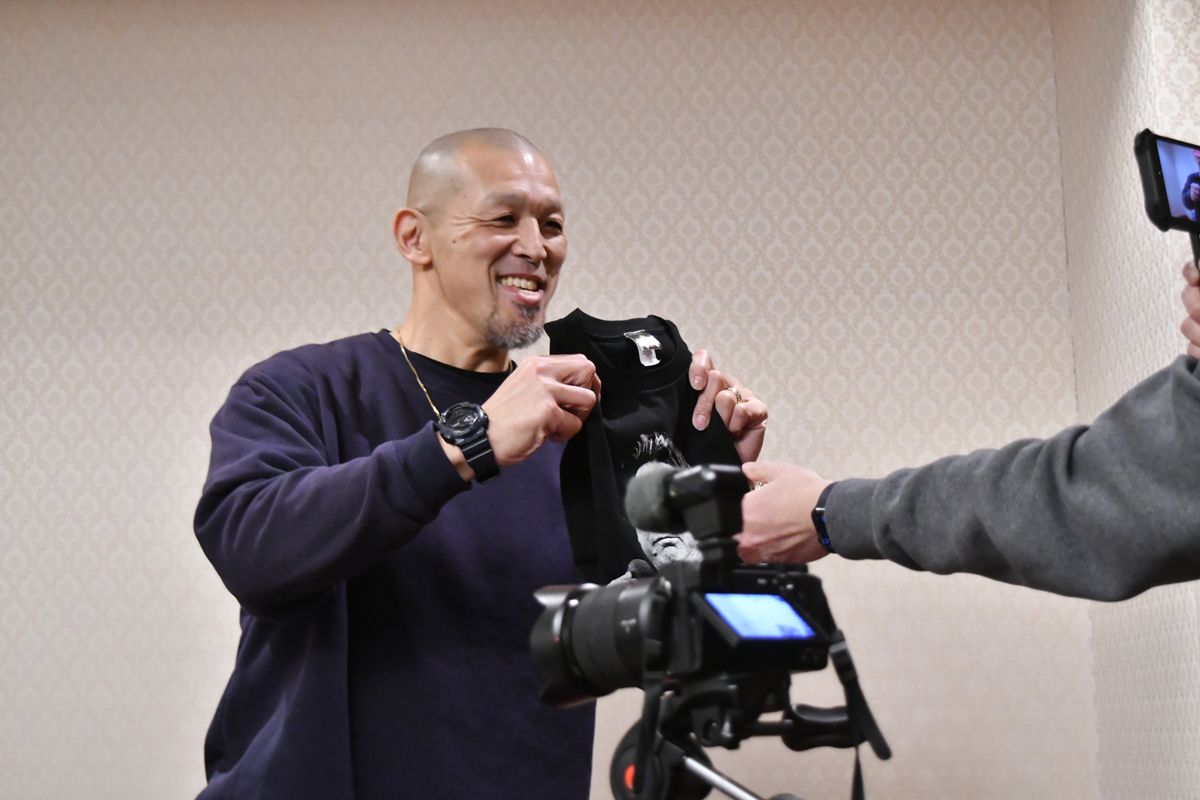「ストロングの会場と言わず、ネタ的にも他の会場で着てもらって全然OKなので。皆さんこれを着て取材してやってください」