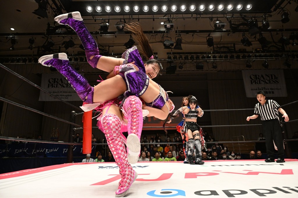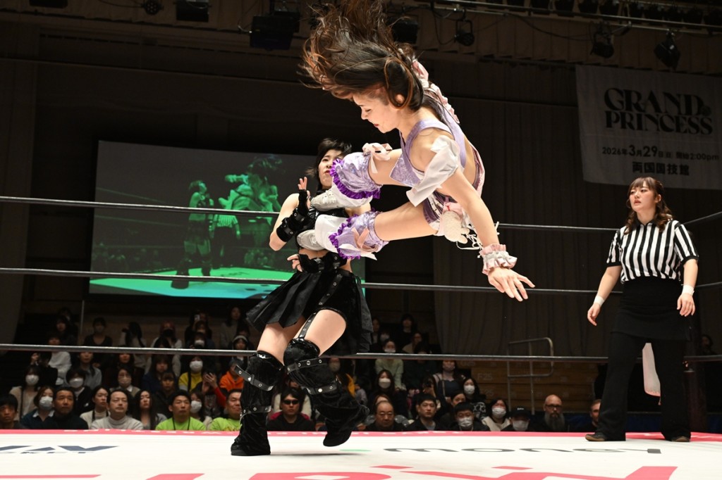 東京女子プロレスが2月14日、東京・後楽園ホールで「第6回“ふたりはプリンセス”Max Heartトーナメント」を開催した。3・29両国国技館でのプリンセス・オブ・プリンセス選手権試合(王者=渡辺未詩vs挑戦者=荒井優希)の初の前哨戦は渡辺が荒井組を制した。