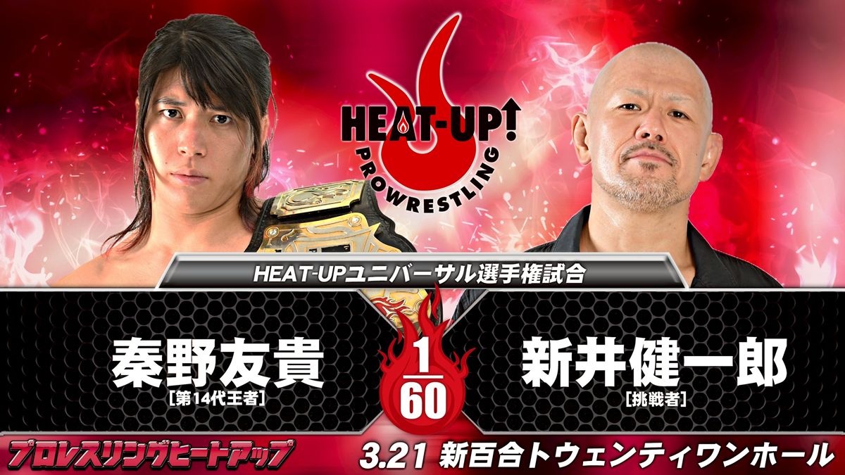 【HEAT-UP】王者・秦野友貴が“ベテラン”新井健一郎を迎撃! V5戦へ闘志/小6レスラー助川蓮「小学校卒業記念」大会全カード決定