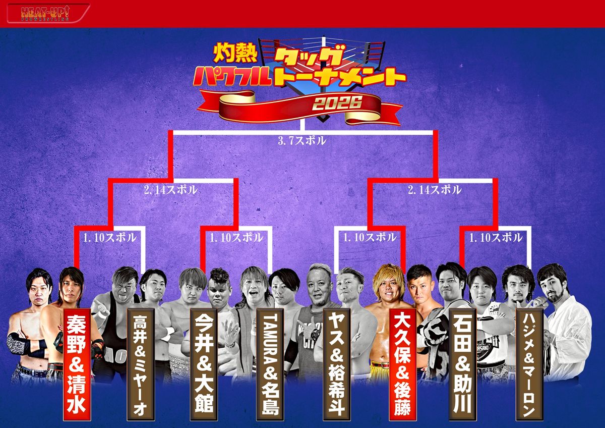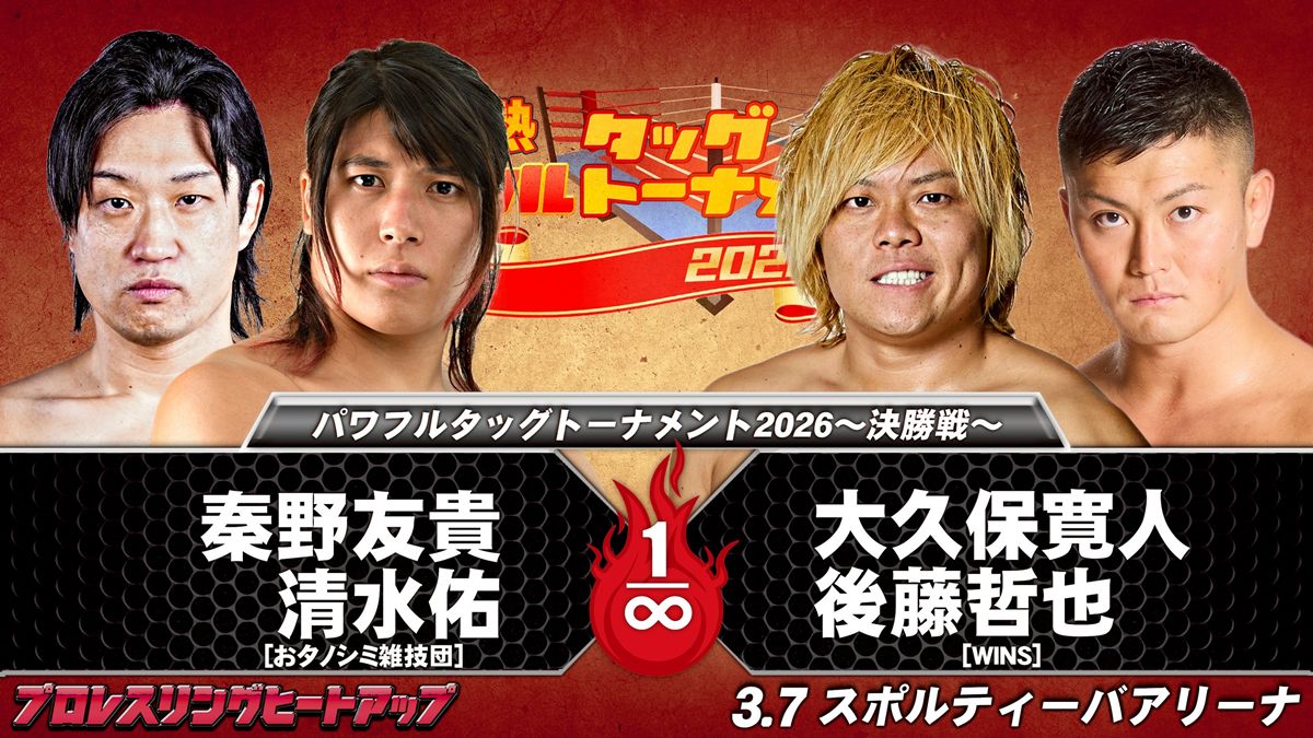 【HEAT-UP】3.7名古屋『パワフルタッグトーナメント2026』決勝! 秦野&清水vs大久保&後藤/TAMURAと名島が60分1本勝負で激突