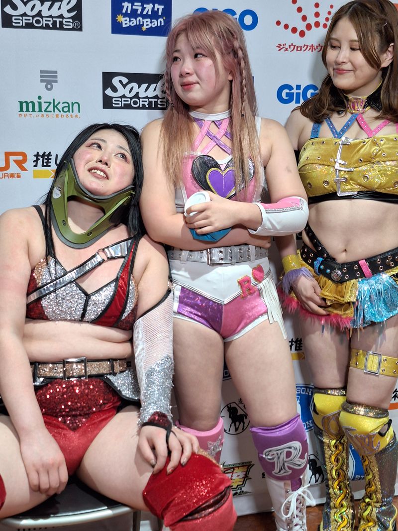 試合後のバックステージで、首にコルセットを巻く舞華のとなりにいたのが梨杏だった。「今日で解散でいいかな、みんな?」舞華の問いに真っ先に答えたのが梨杏で、「また成長して対角に立ちます!」と宣言。これを聞いた舞華は試合で大ダメージを負いながらも「いいぞ、いいぞ!」と梨杏にたくましささえ感じていた様子だった。