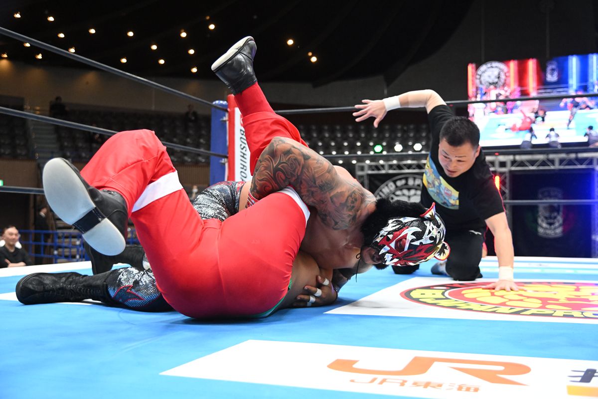 顔を隠してうずくまるタイガーをそのまま押さえ込み、マグヌスが3カウントを強奪。