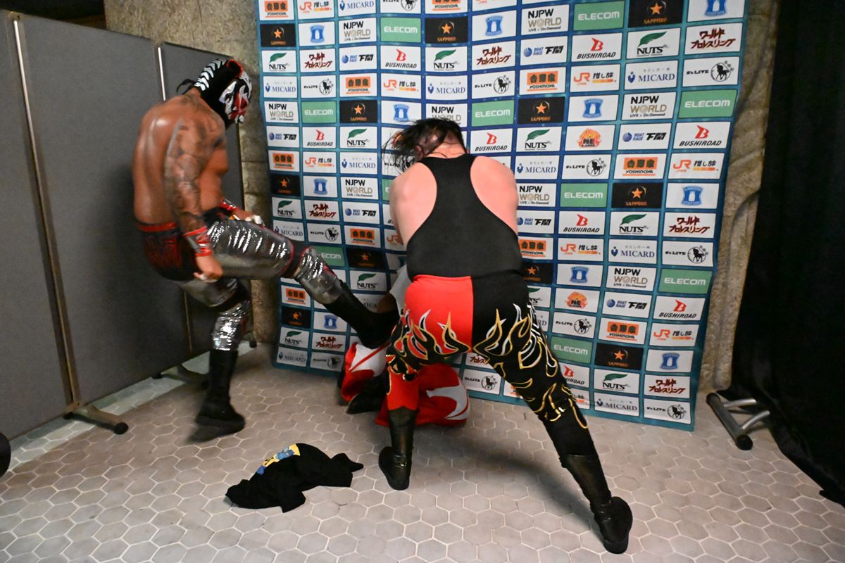 バックステージでも両者の乱闘は続いた。Tシャツで顔を隠しうめき声を上げるタイガーに対し、アベルノとマグヌスが再び襲撃。