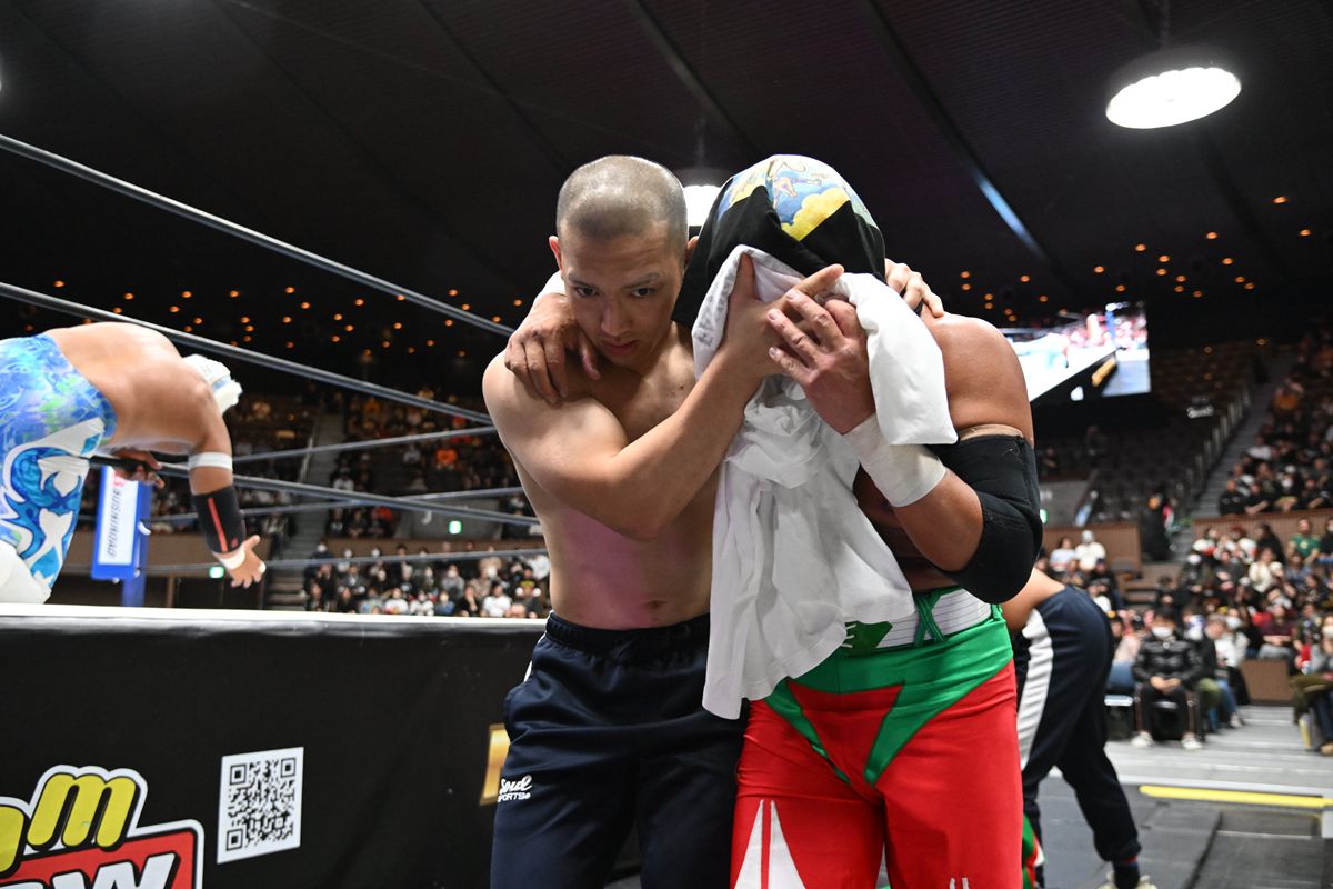 マグヌスはメキシカンナショナルタッグのベルトを携え、アベルノは入場後にマスクを脱ぎ捨てるパフォーマンスでリングイン。ゴングが鳴ると、序盤からアベルノとマグヌスは連携してタイガーを蹂躙した。