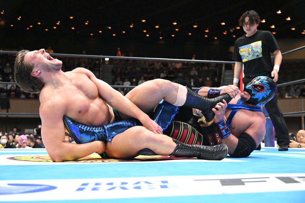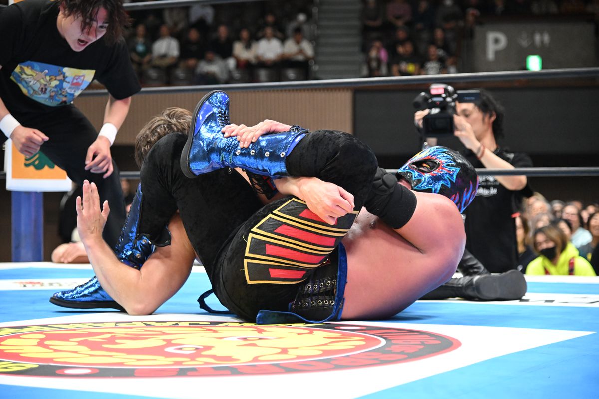 熟練のルチャドールは、ゼインの腕攻めをいなし、レッグブリーカーやロメロスペシャルといった多彩なジャベで若き挑戦者をキリキリと痛めつける。