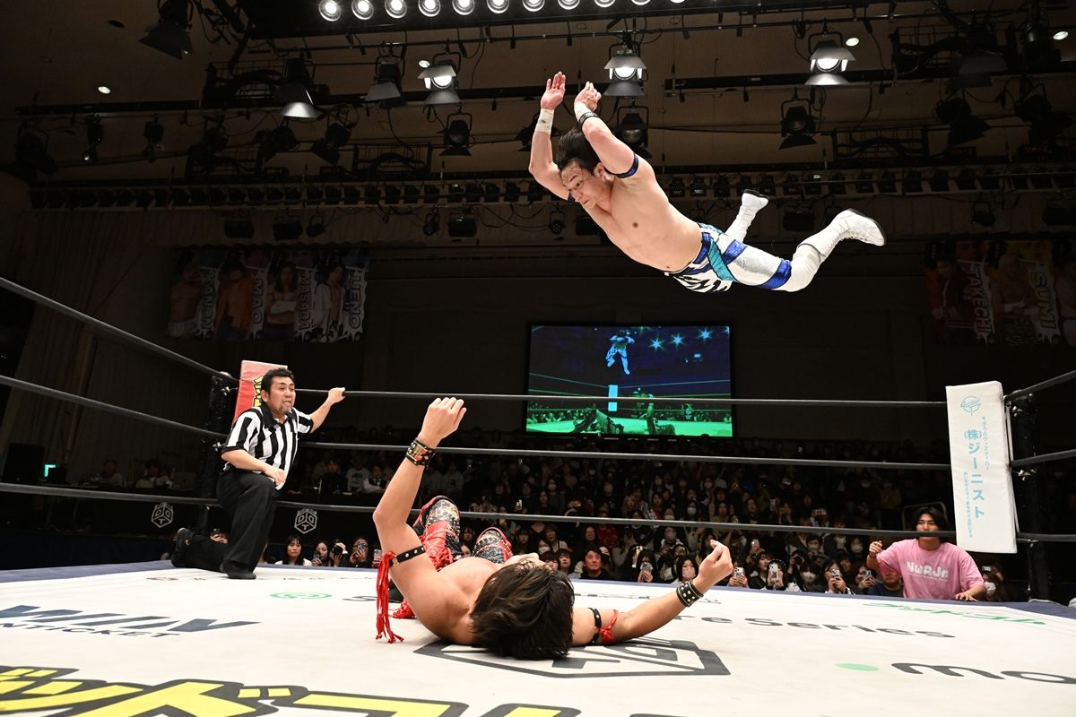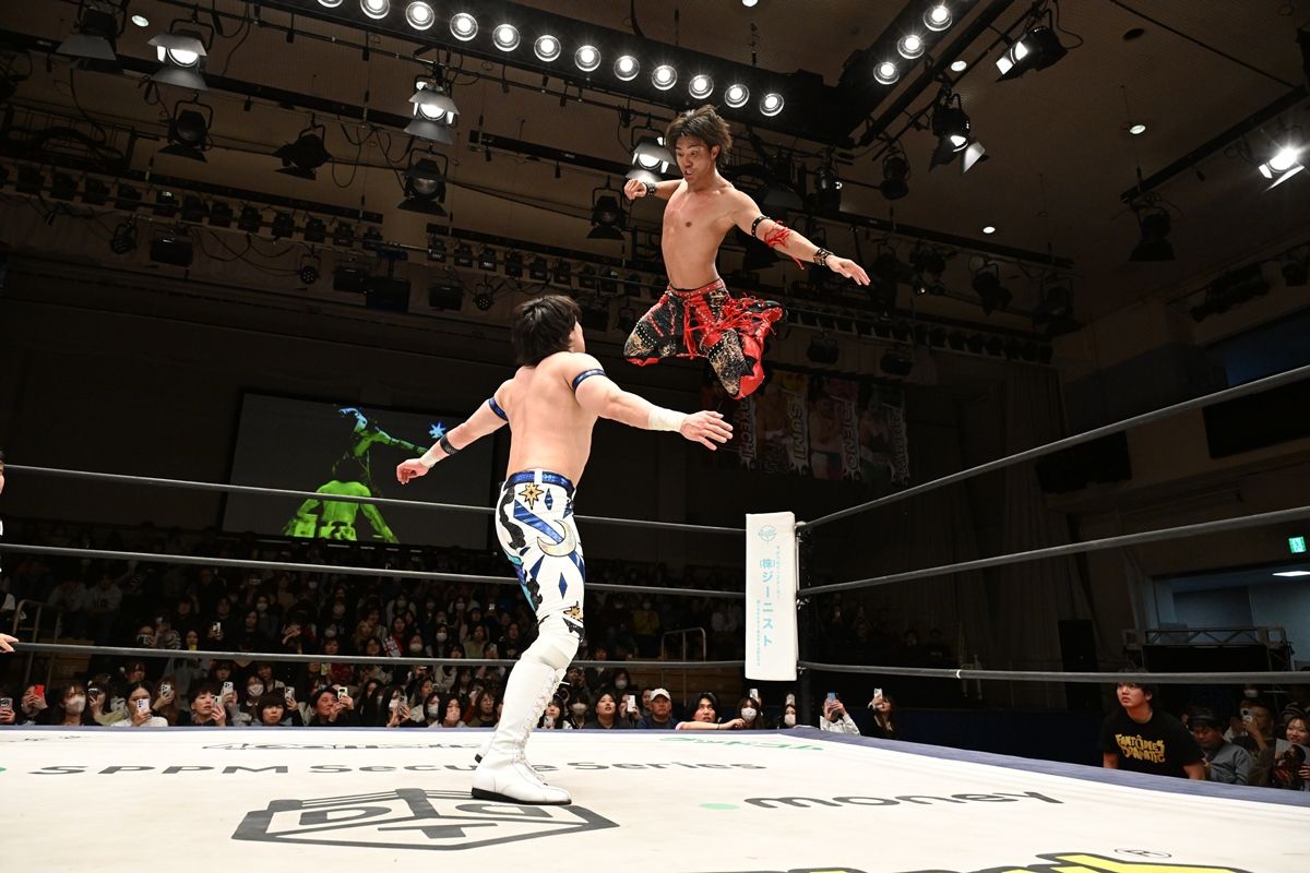 DDTプロレスが2月22日、東京・後楽園ホールで「HYBRID PERFORMER 2026~武知海青デビュー2周年記念大会~」を開催した。LDH JAPAN 所属の16人組ダンス&ボーカルグループTHE RAMPAGE・武知海青が「デビュー2周年記念試合」で、KO-D無差別級王者・上野勇希と初のシングル戦に臨み、善戦健闘も初の黒星を喫した。