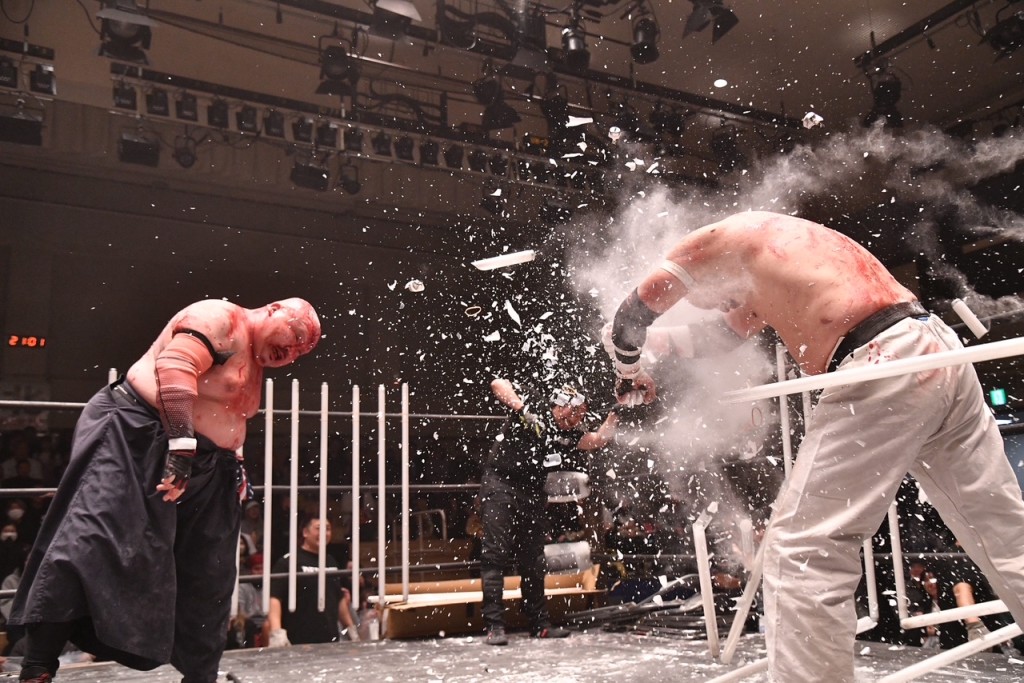 【大日本】アブドーラ・小林が菊田一美を下しデスマッチ王座V2!大門寺崇は伊東竜二を退けストロング王座守る。退団直前の青木優也は惜別の勝利