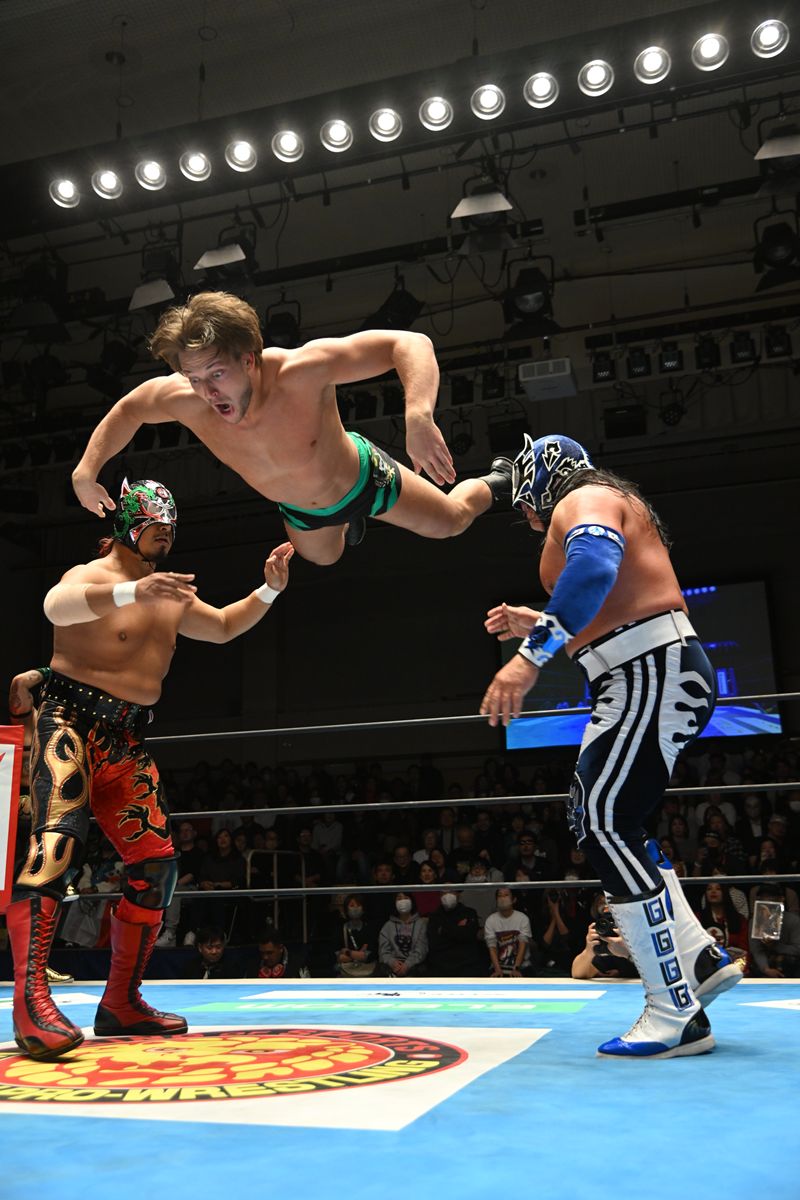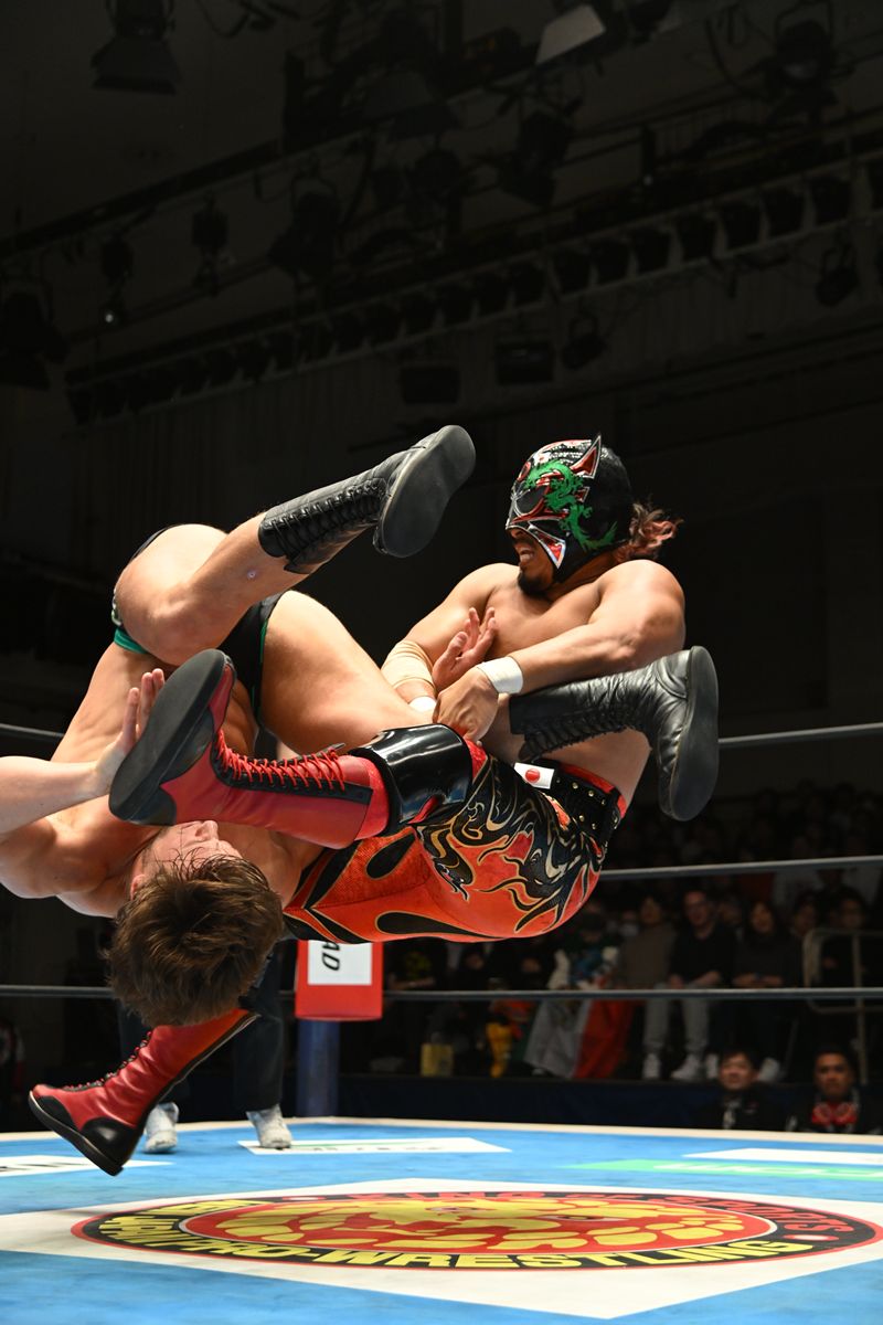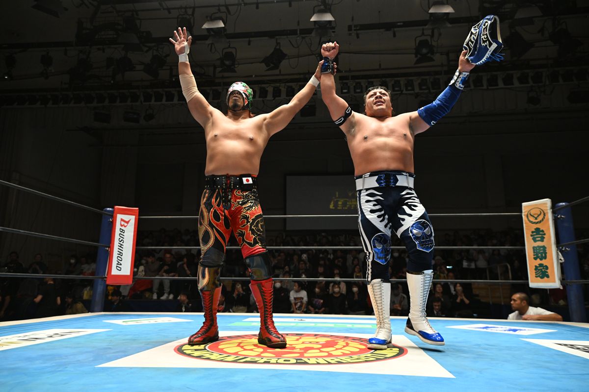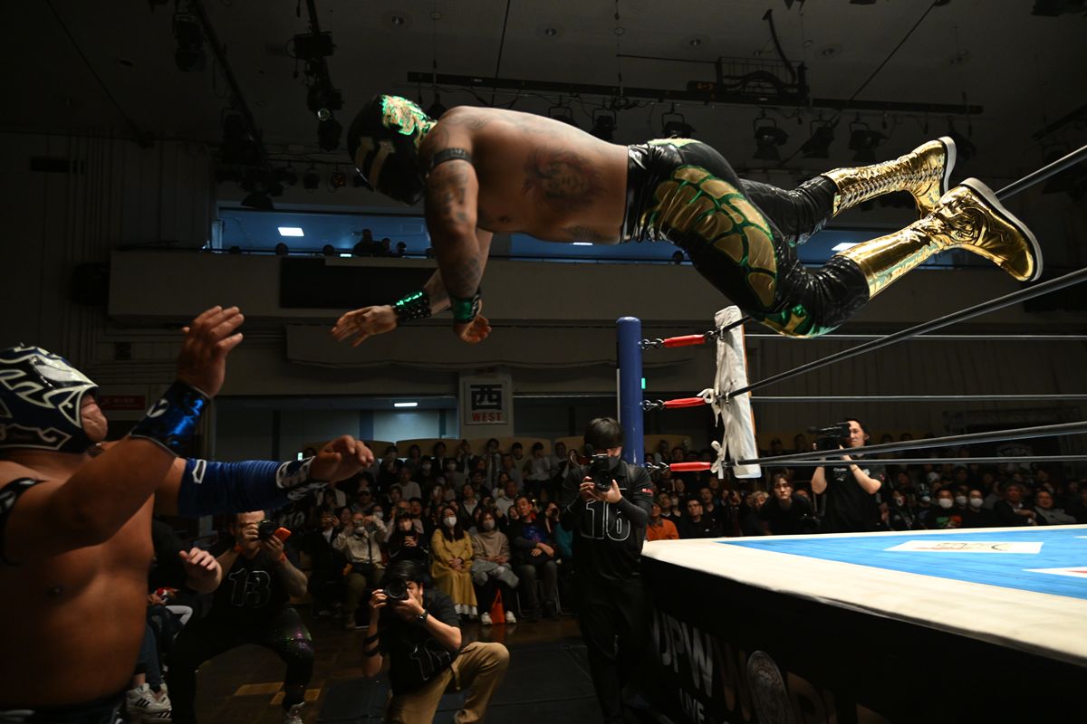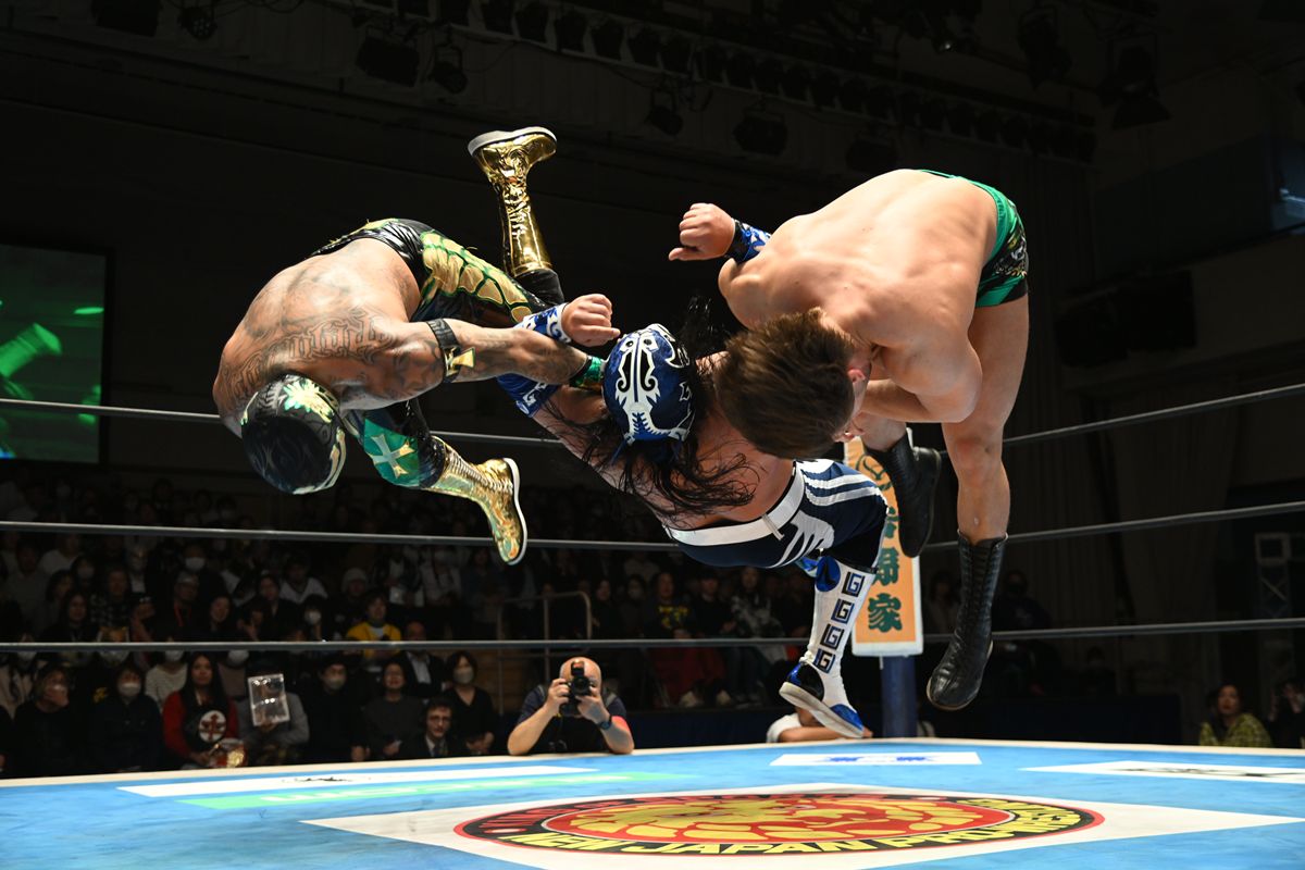 【新日本】鷹木信悟の代打“ハツラツ・ゲレーロ”が後楽園を熱狂の渦に! 謎の覆面男がゼインを粉砕し、ウルティモと歓喜のダンス